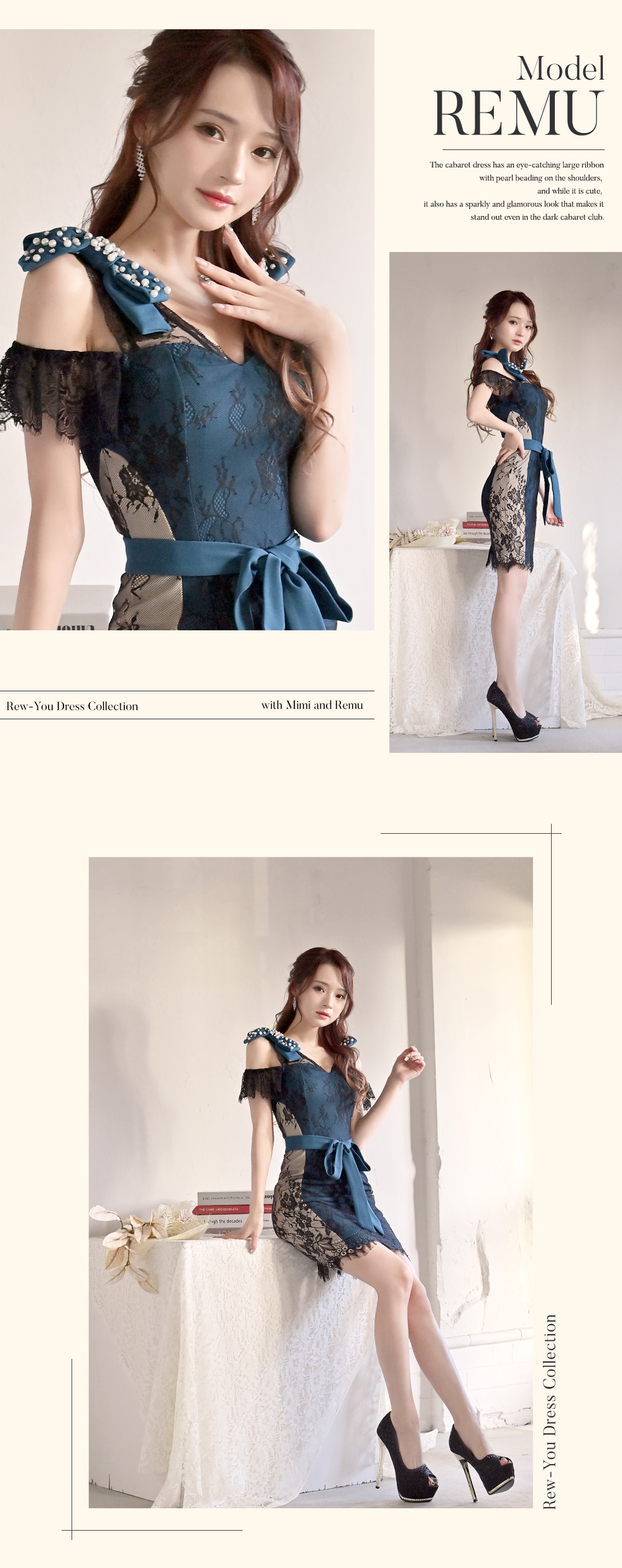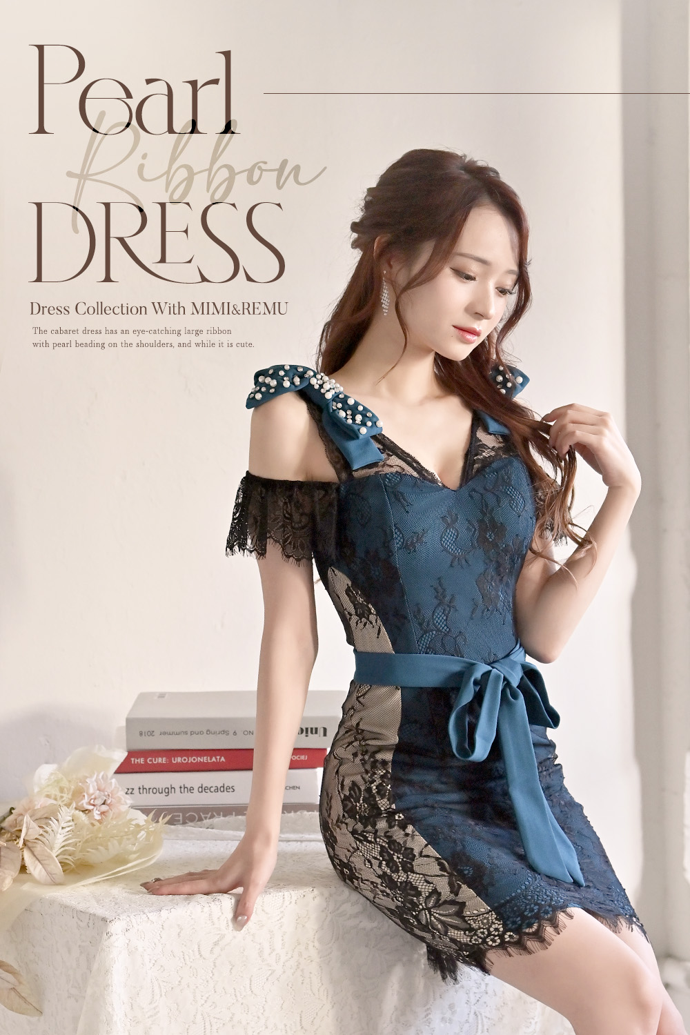 肩のリボンパールのディティールで 愛らしく、でも色っぽさも醸し出す♡ブラックレースもあしらってTHE・あざとっぽ♡