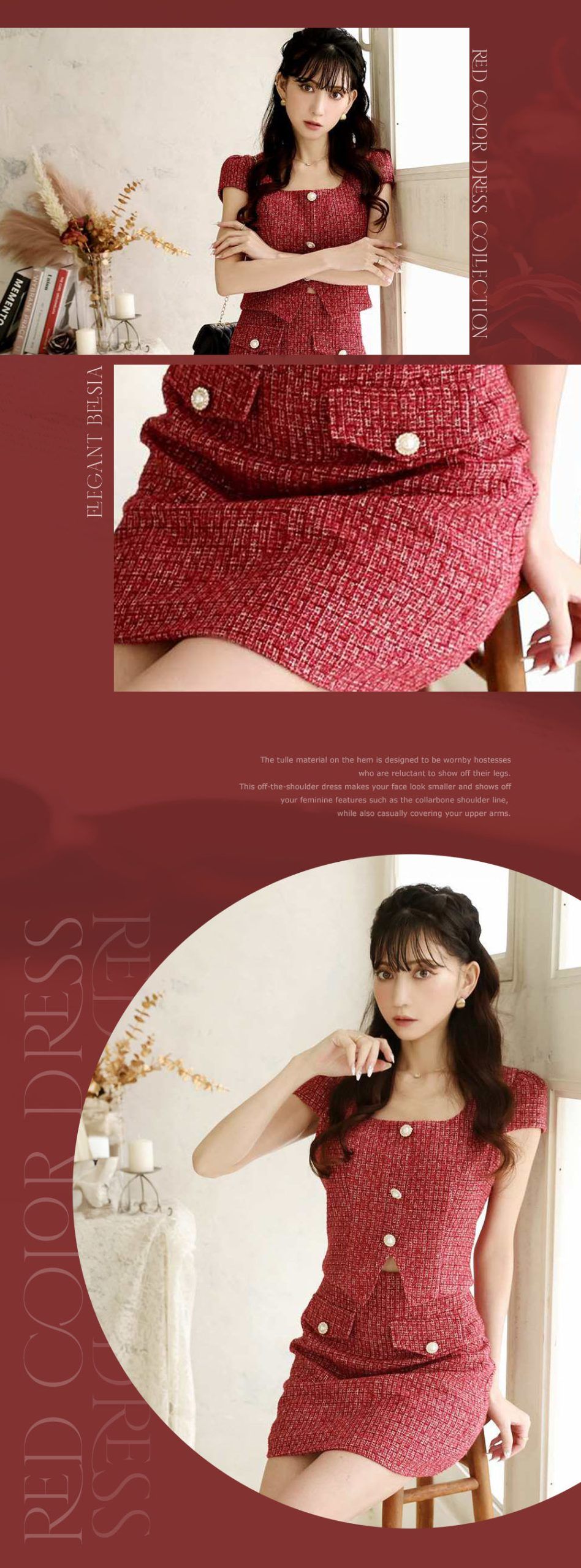 増えてくる同伴にもぴったりな赤色ドレス♡ガーリーなデザインは永遠のモテ女になれる♡
