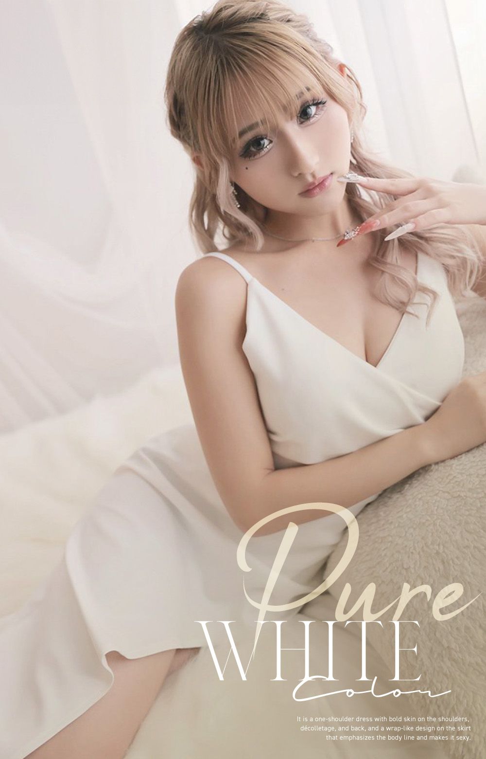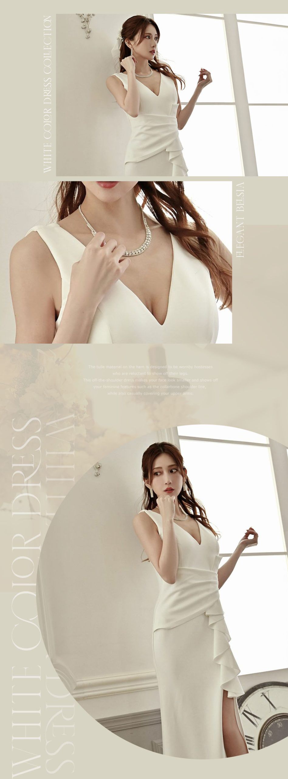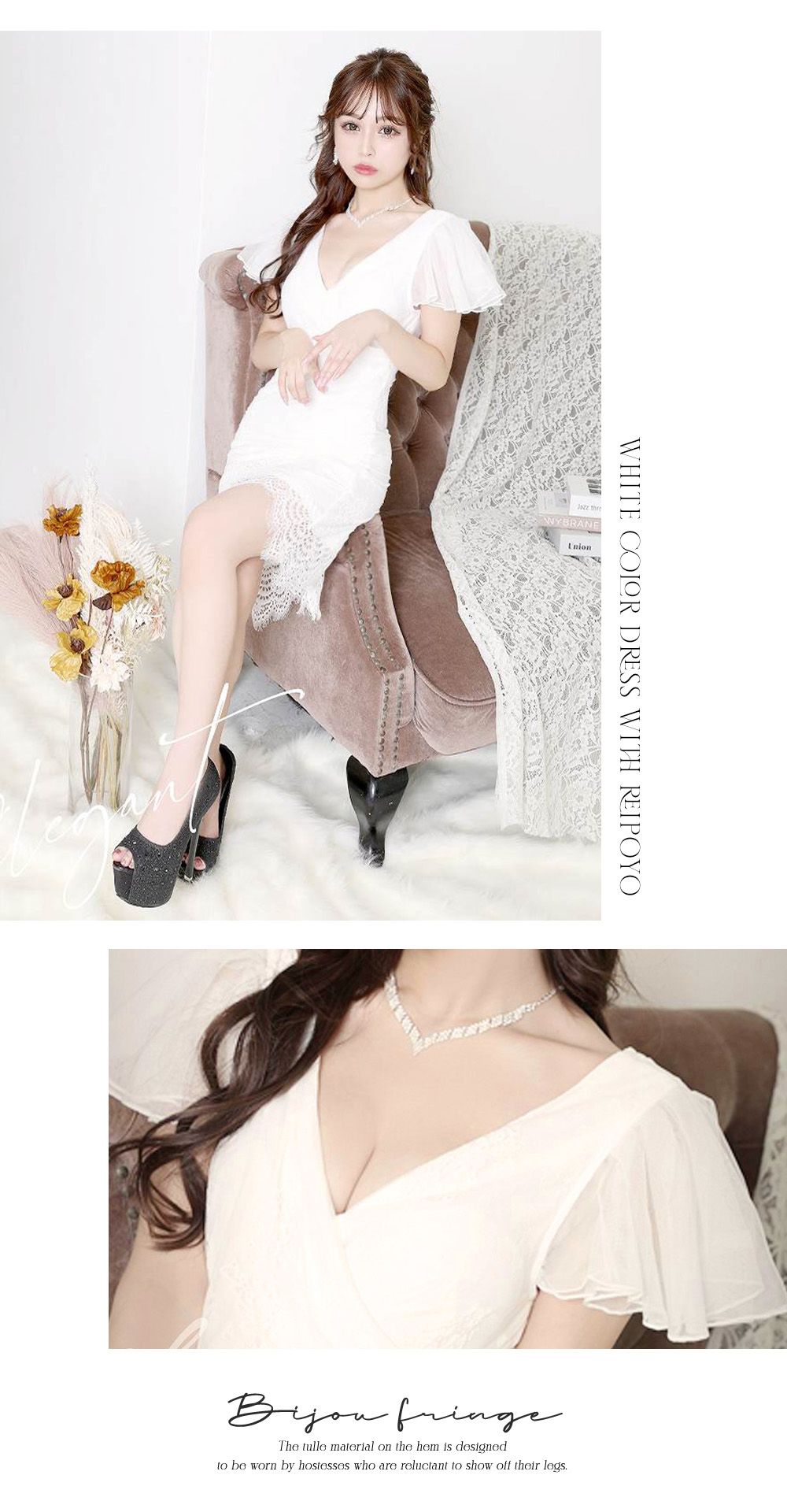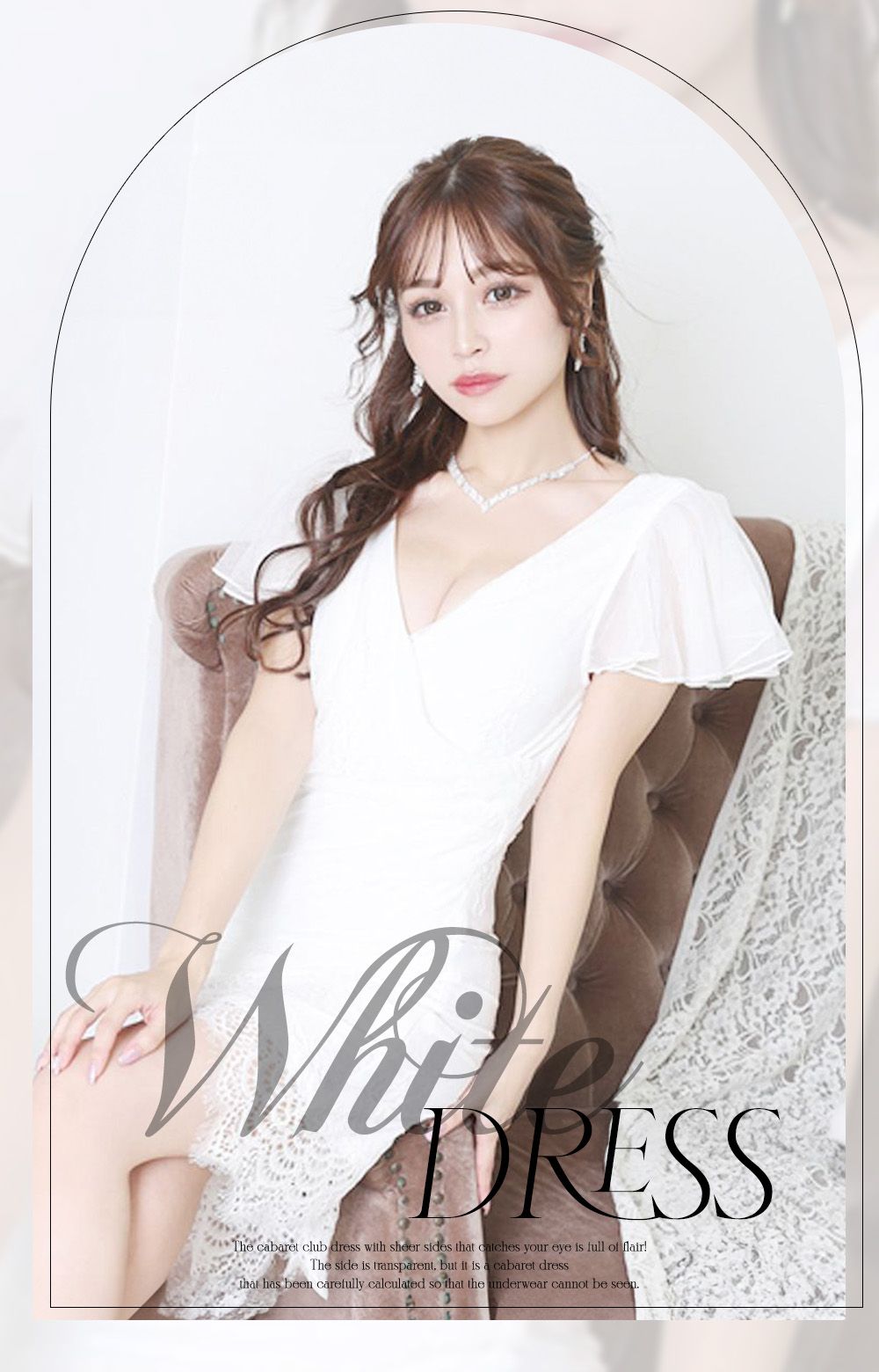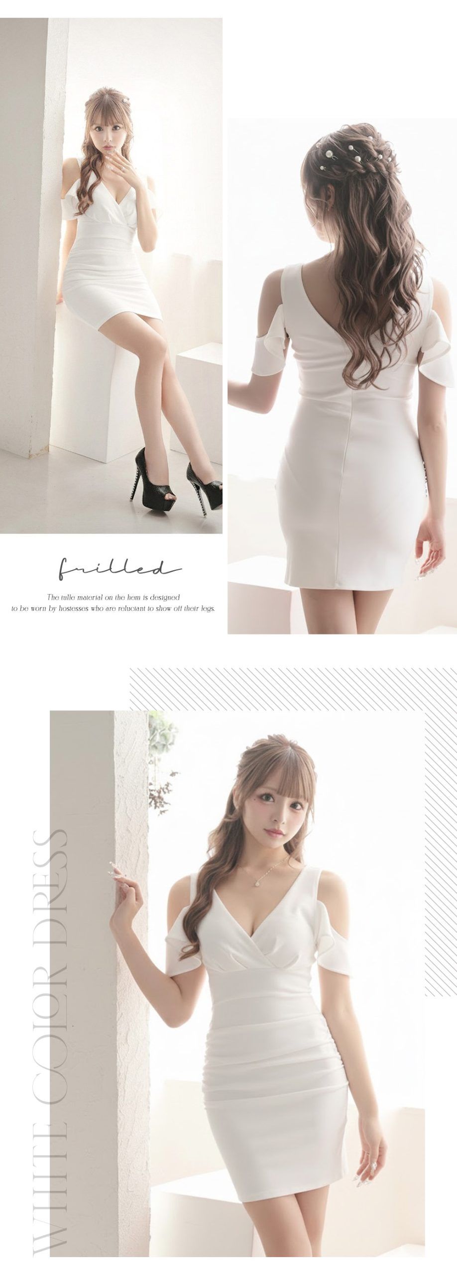 圧倒的な清潔感!純白のモテオーラ満開♡デコルテ美人を叶える魔法のVネックとフリル袖♡他のキャバ嬢と差をつけて♡