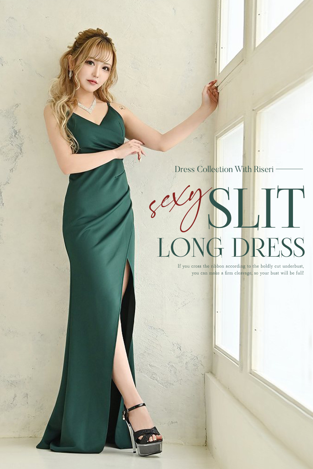 深めのスリットから覗く美脚でドキドキさせる♡
