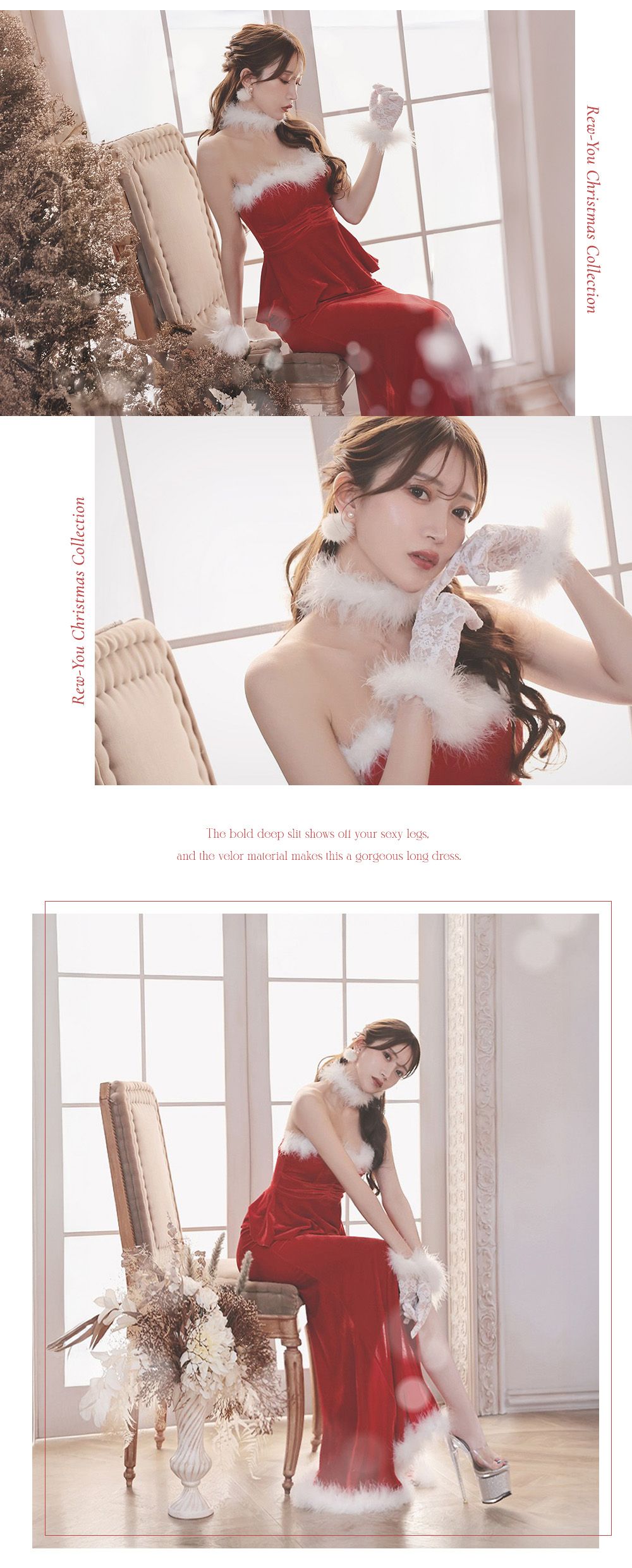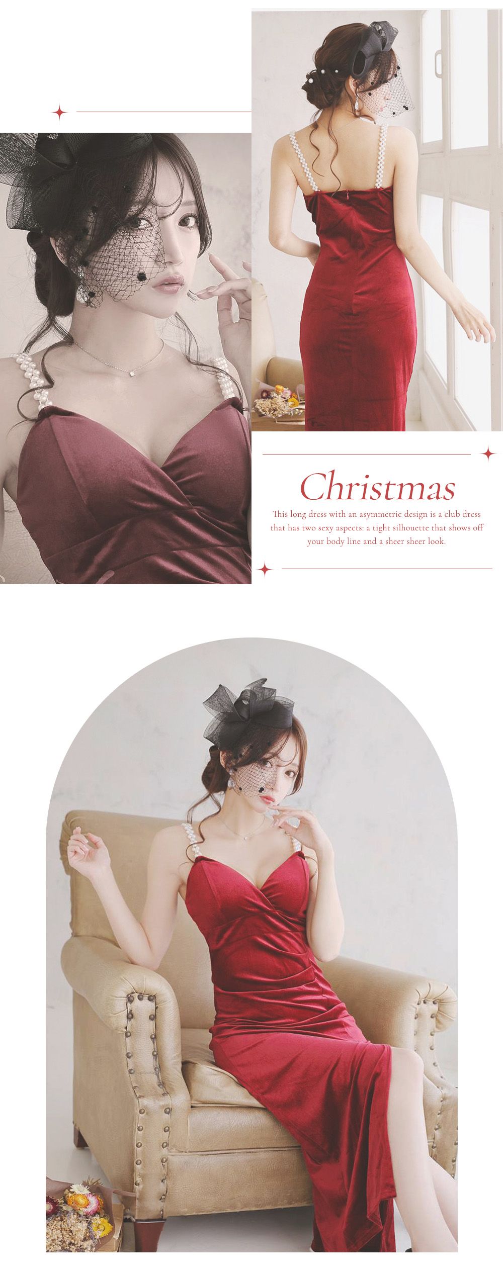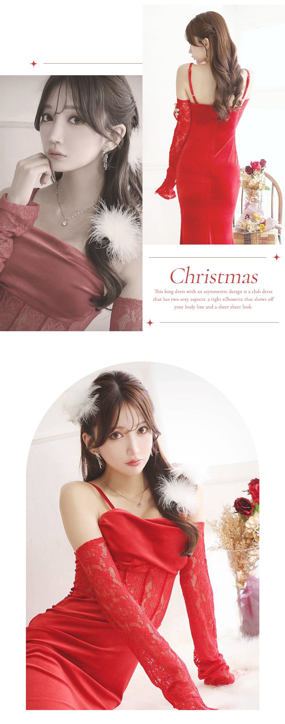 華やかなベルベットにペプラムデザインが映えるサンタロングドレス♡ウエストラインを美しく魅せるシルエットで上品にきらめく、クリスマスナイトにぴったり♡