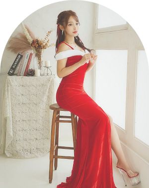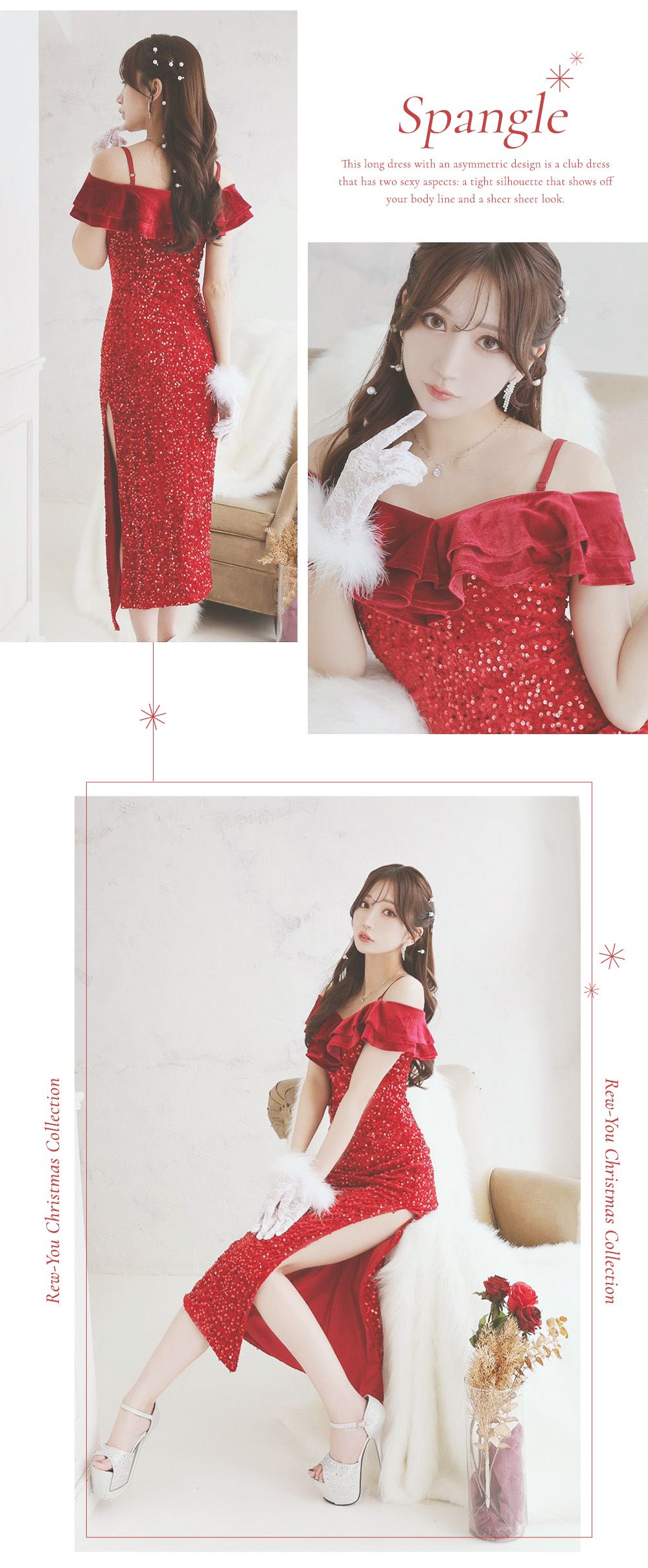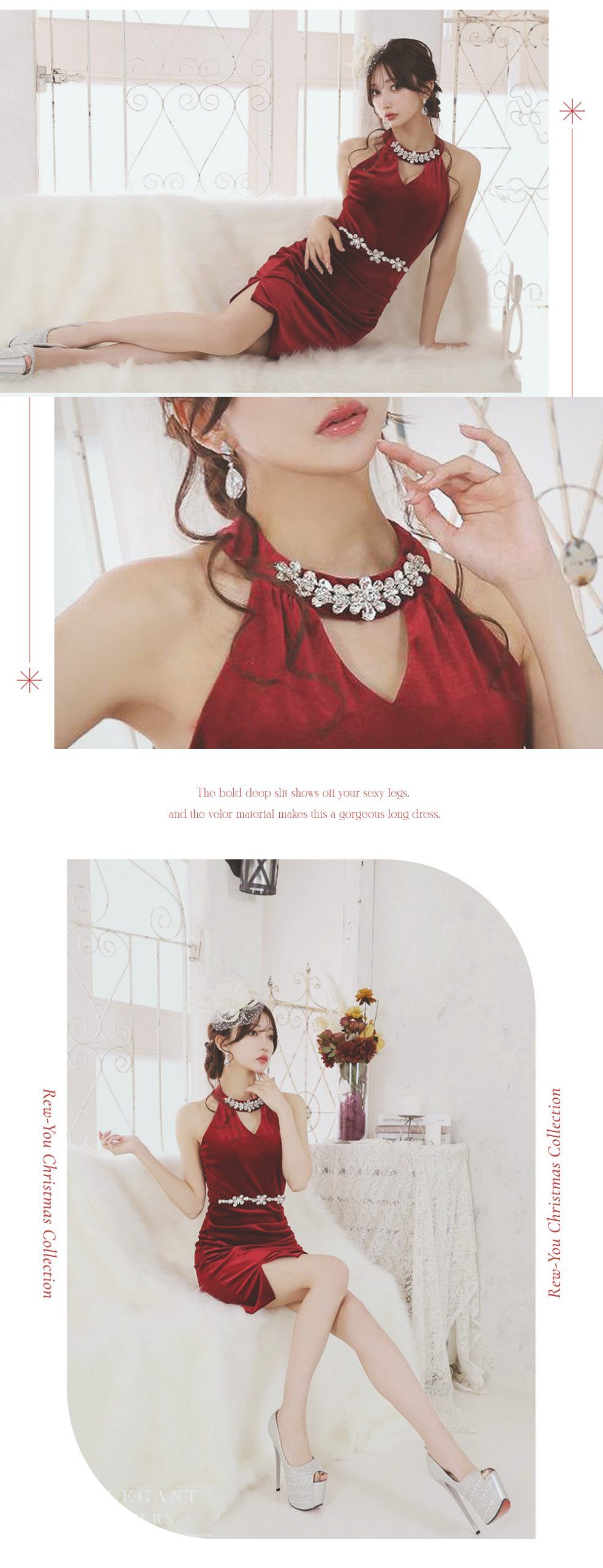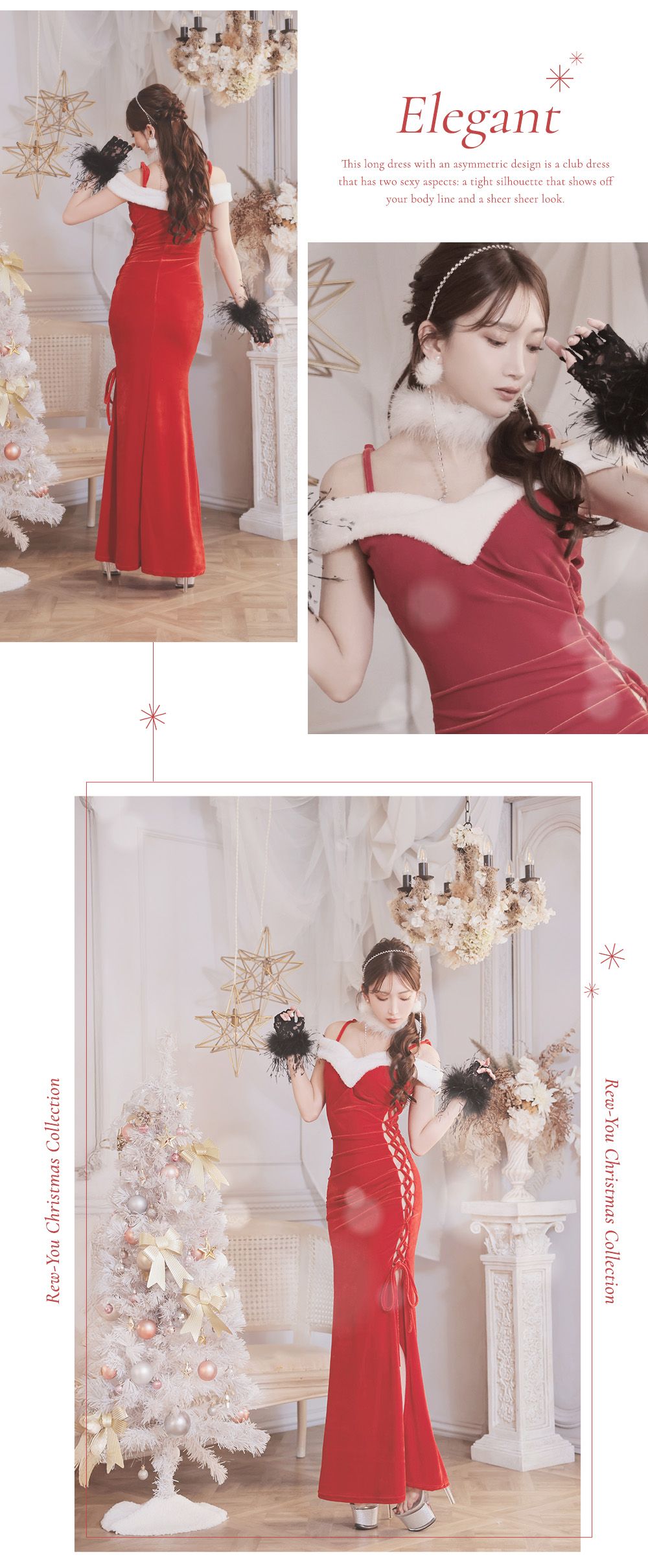 華やかなベルベットにペプラムデザインが映えるサンタロングドレス♡ウエストラインを美しく魅せるシルエットで上品にきらめく、クリスマスナイトにぴったり♡