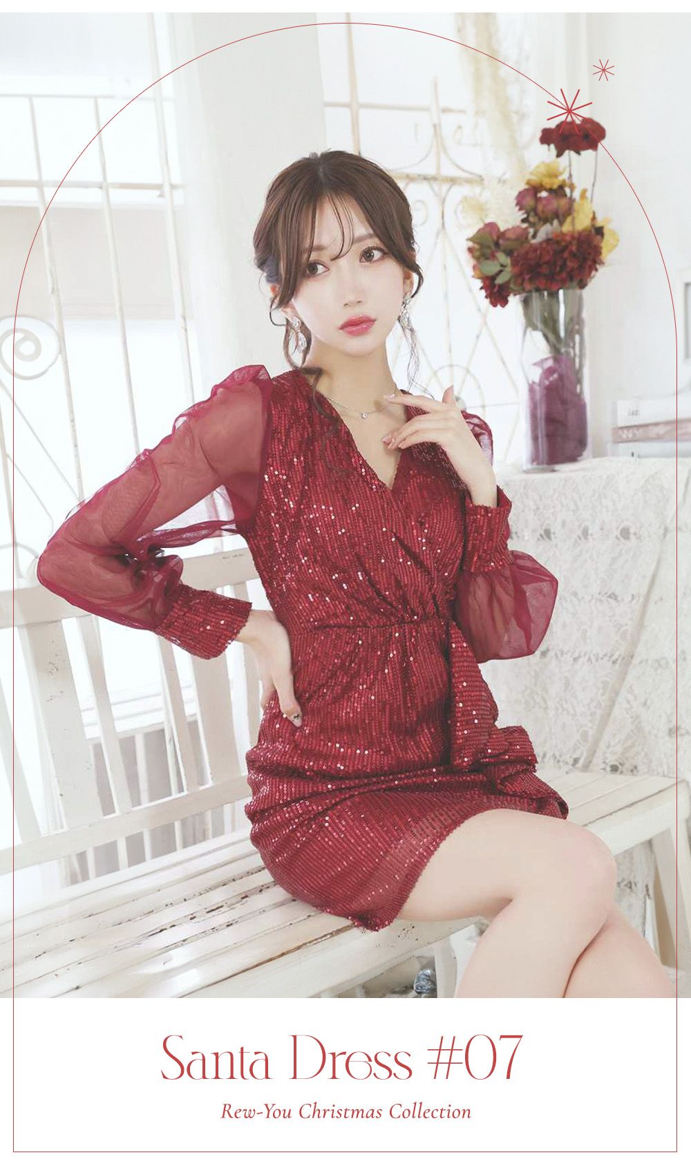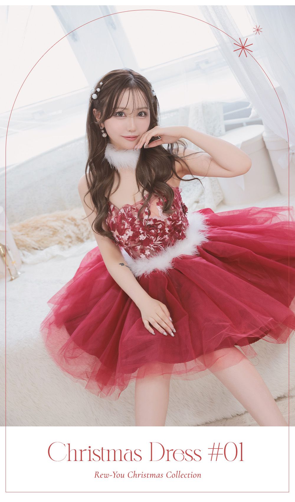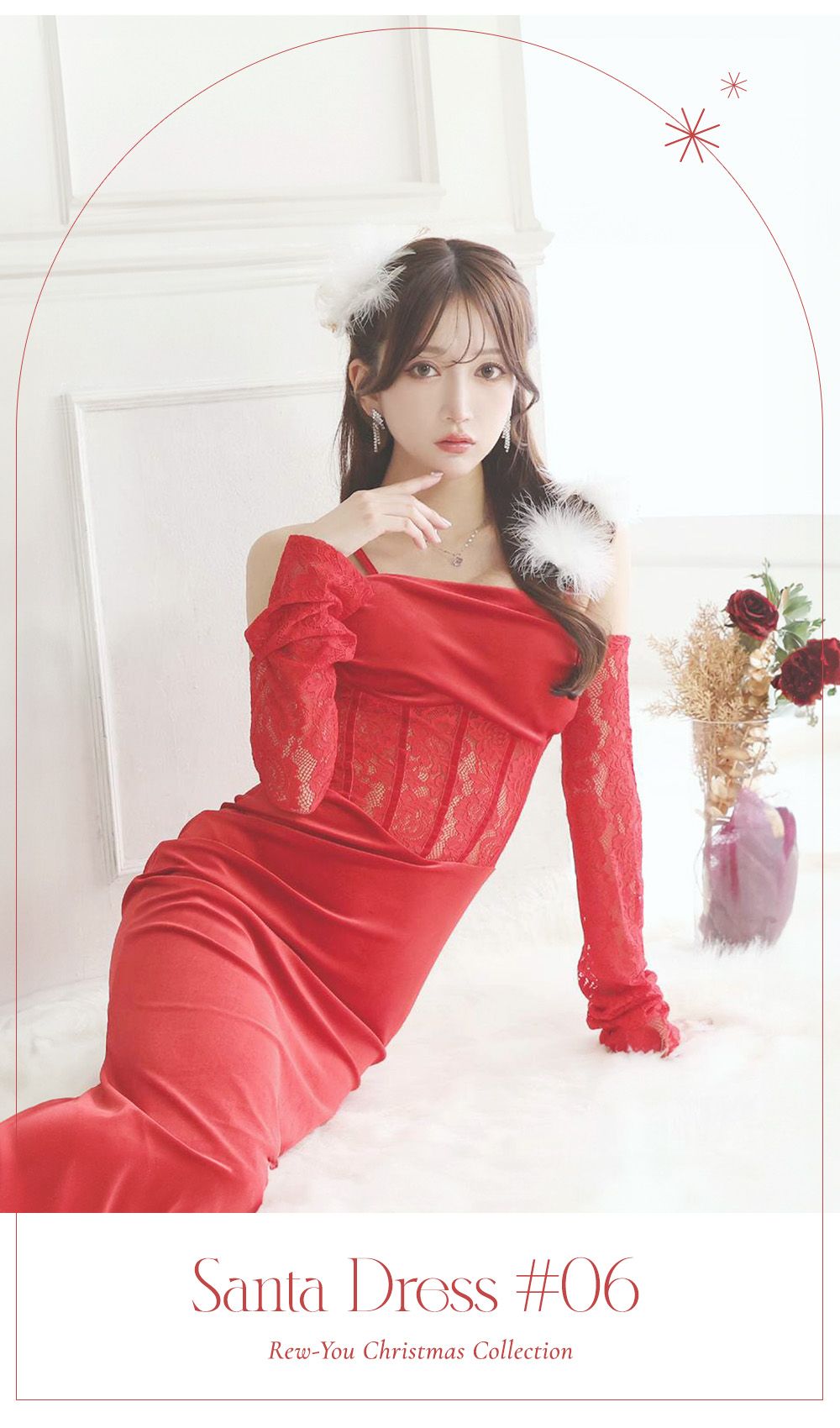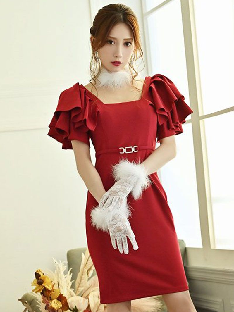 鮮やかレッドにレースをプラスして、イイ女度を高めたクリスマスドレス♡控えめな肌見せが男心をくすぐる♡