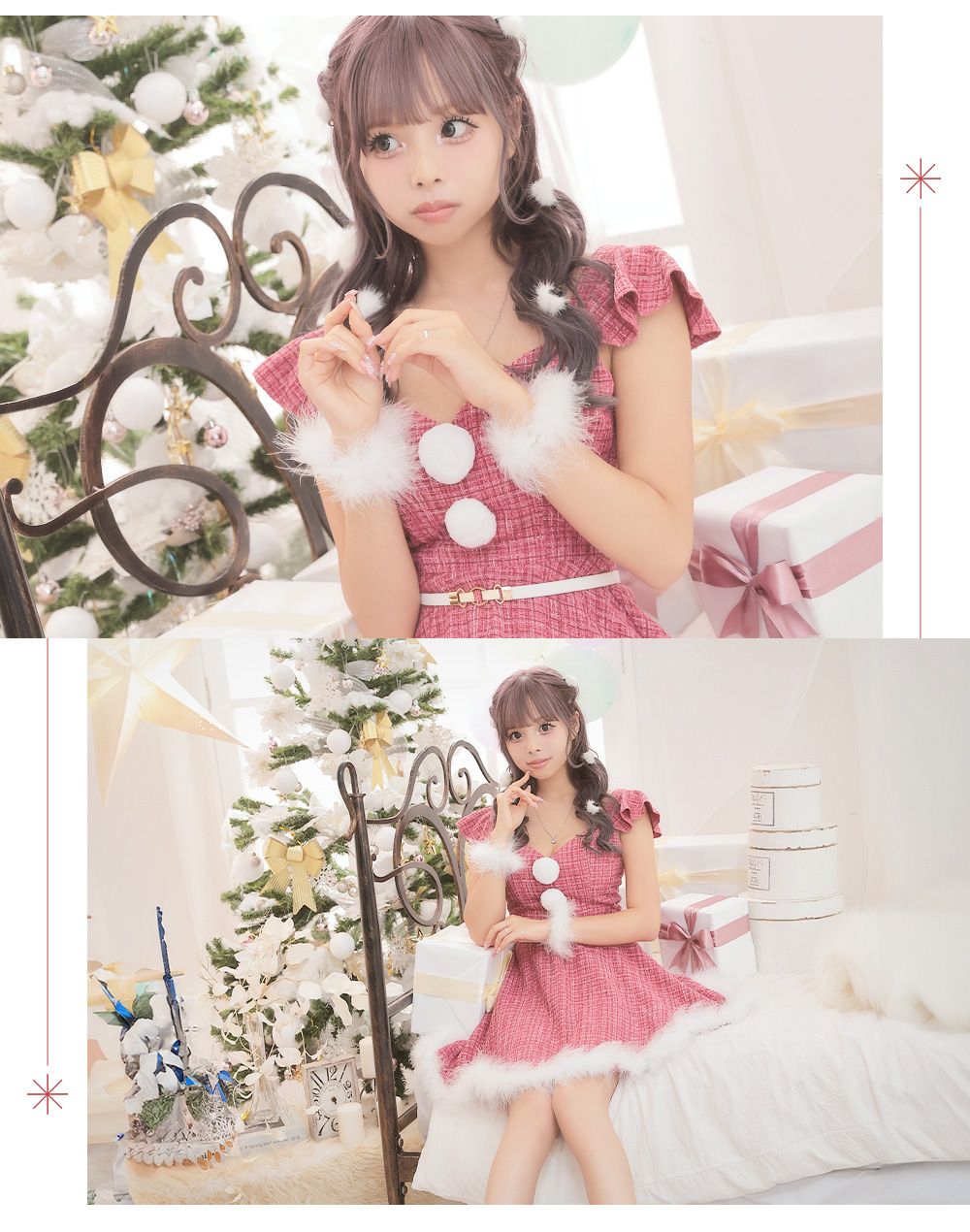 今年のクリスマスはいつもと違うサンタドレスに挑戦♡甘さたっぷりのピンクツイードドレスはあなたを可愛さ増しましにしてくれる♡