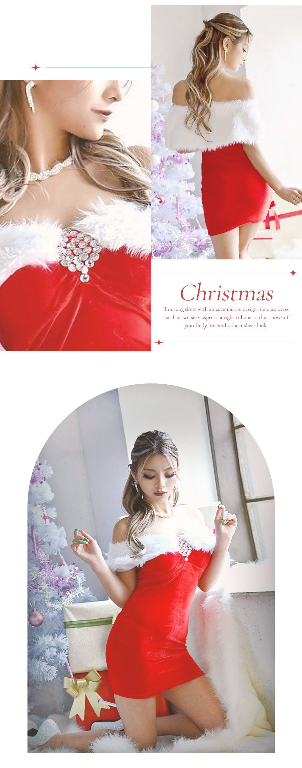 ちょっぴりセクシーに♡ベアドレスタイプのサンタドレス♡聖なる夜だからこそいつもよりもドレッシーに着こなして♡
