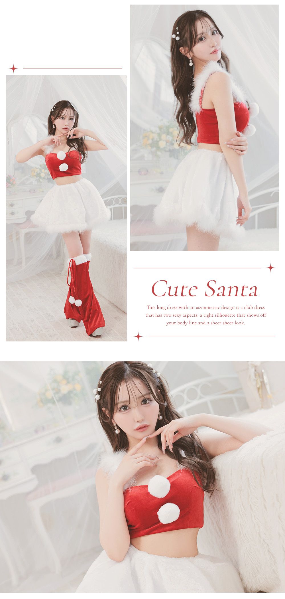 トレンドのセットアップデザインのサンタコスプレ♡シルエットにもこだわったサンタコスプレはスタイルアップ効果も◎♡