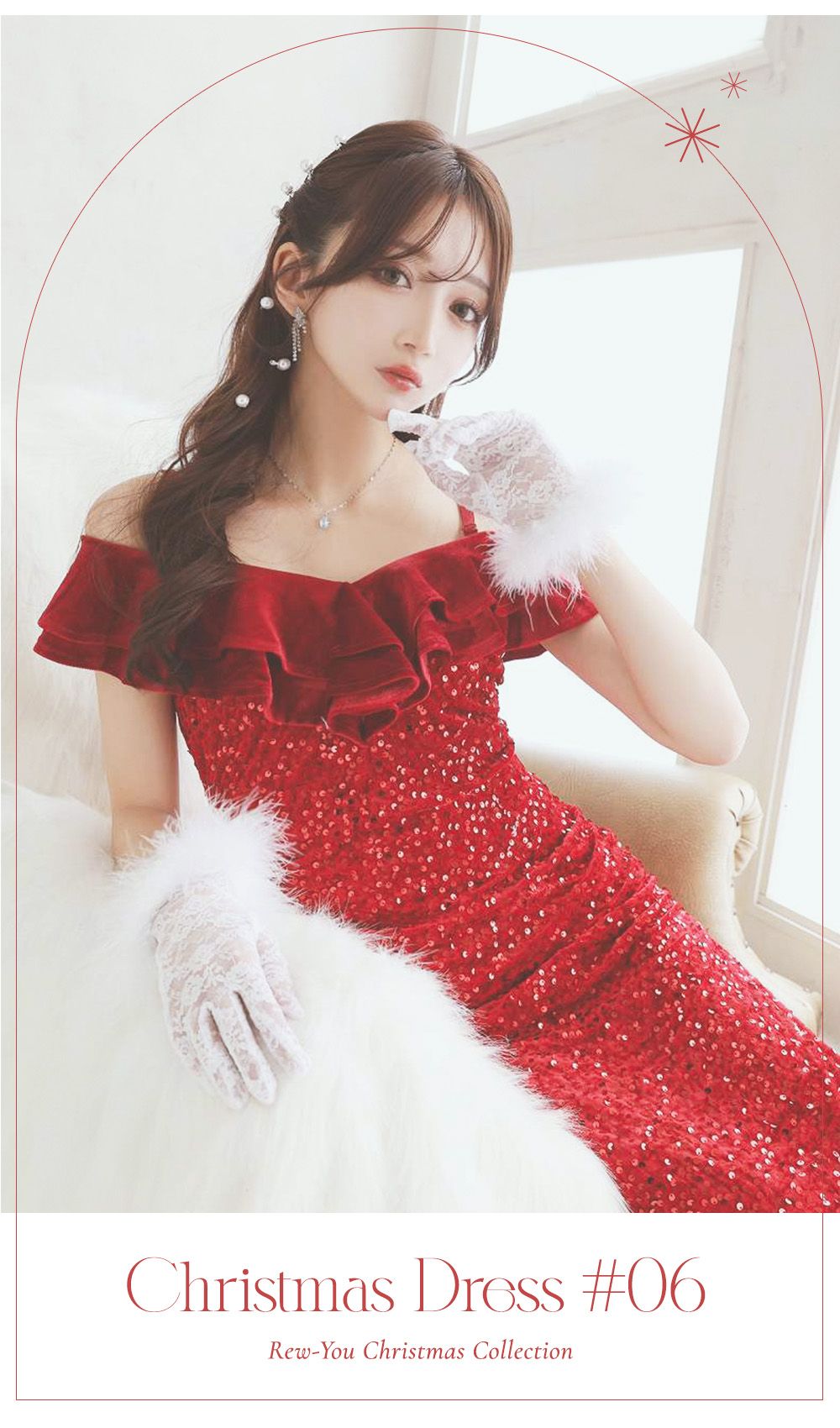 キラキラスパンコールとホリデーレッドがシーズンムードを高めてくれる♡しっかり映えるクリスマスドレス♡