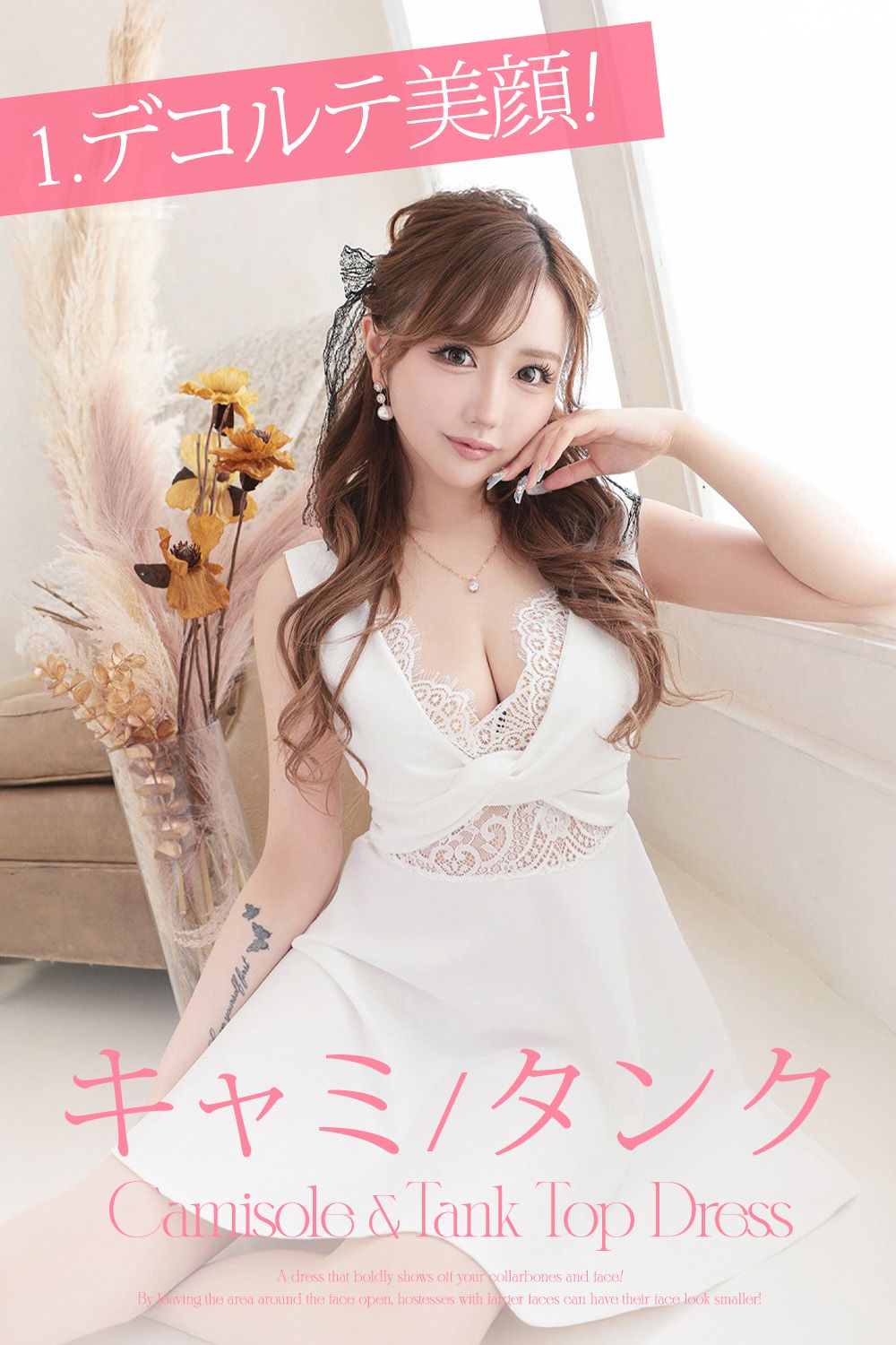 大きめ顔さんにはコレ!大胆に鎖骨や顔周りをスッキリ見せるデコルテ美人ドレス!顔回りをスッキリ開けることでお顔が大きめのキャバ嬢さんは小顔効果♥隠すより出す!これが究極の細見せ効果なんです◎