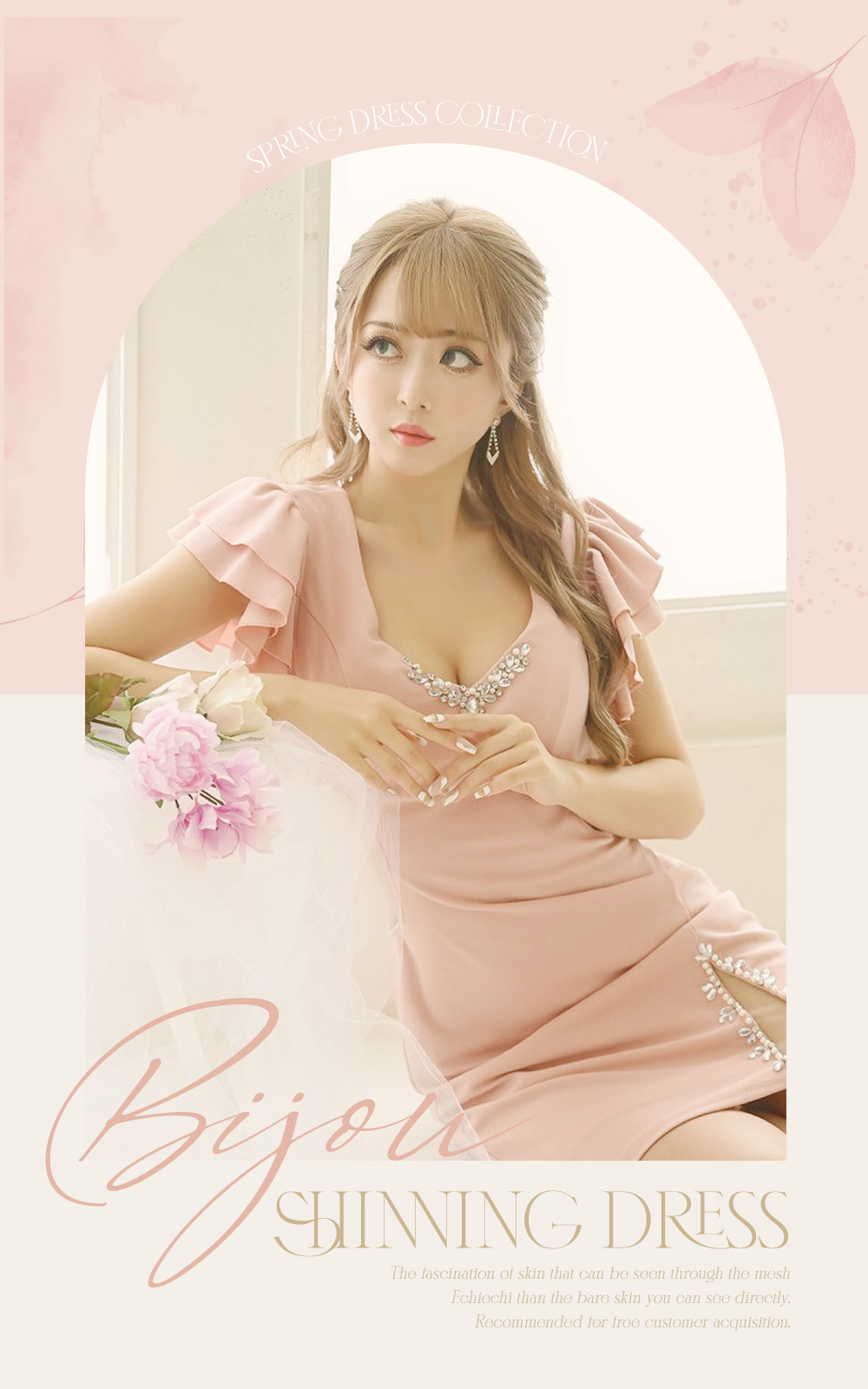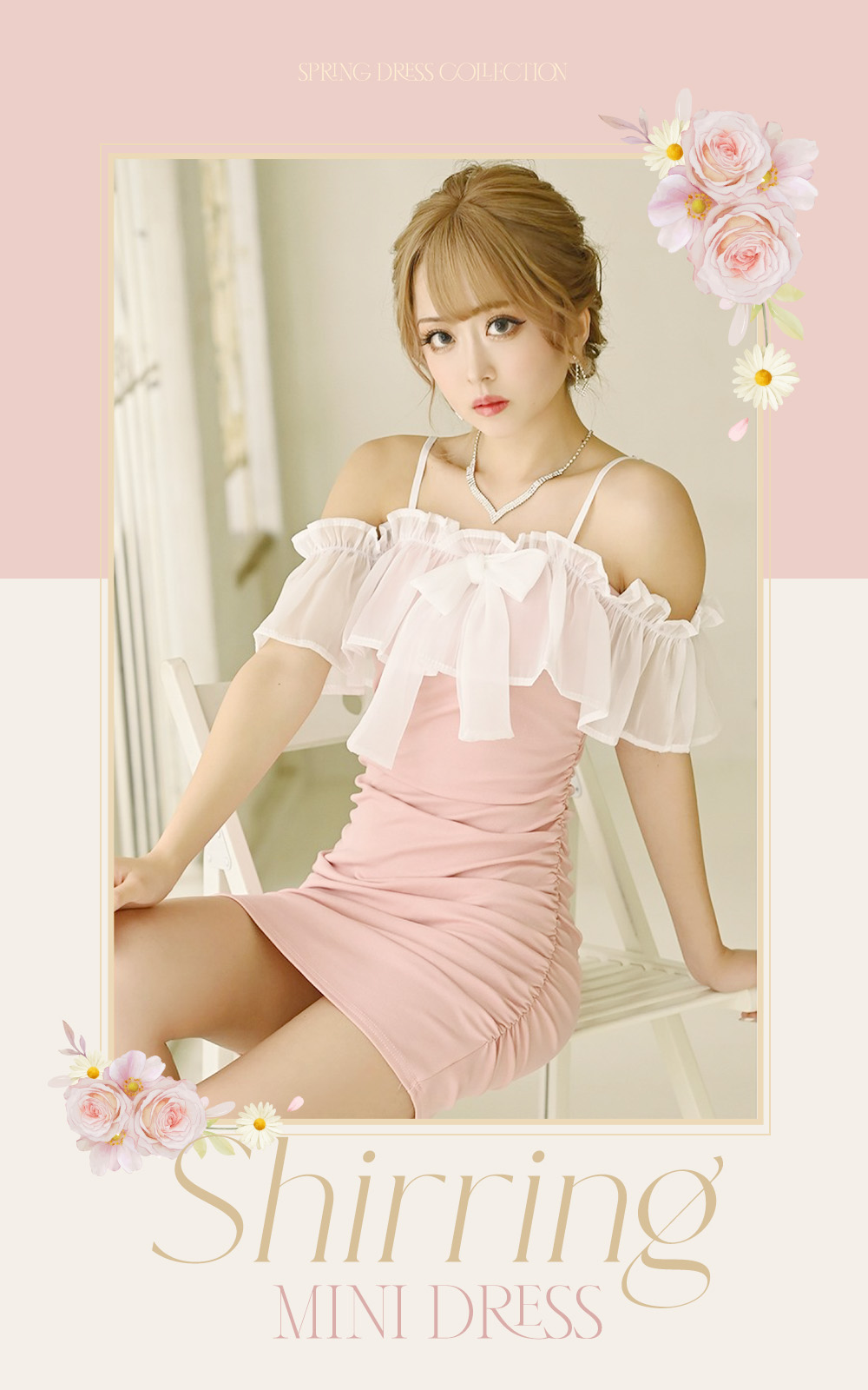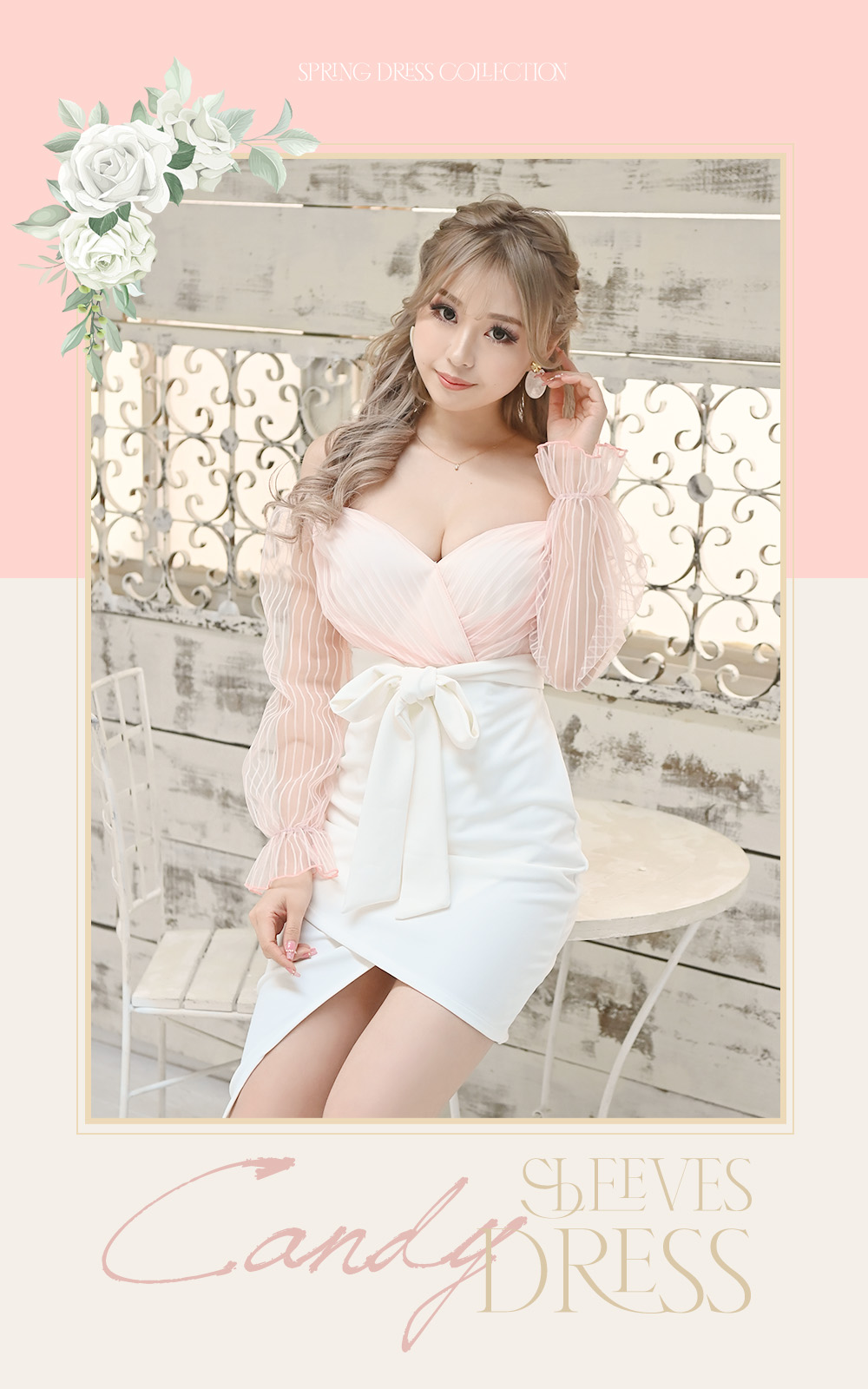 愛らしさ溢れるシフォンとリボンに明るめピンクを取り入れて王道モテ女に♡男受け抜群なデザインの春ドレスは指名もどんどん入るはず♡