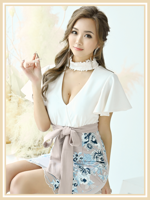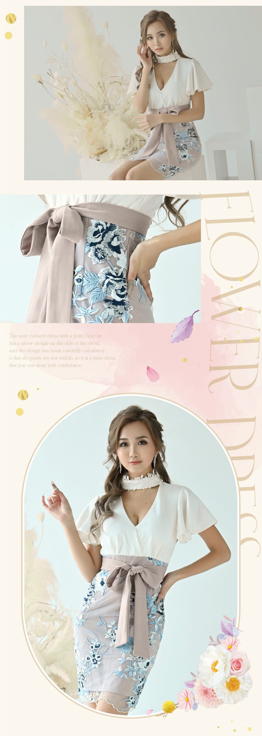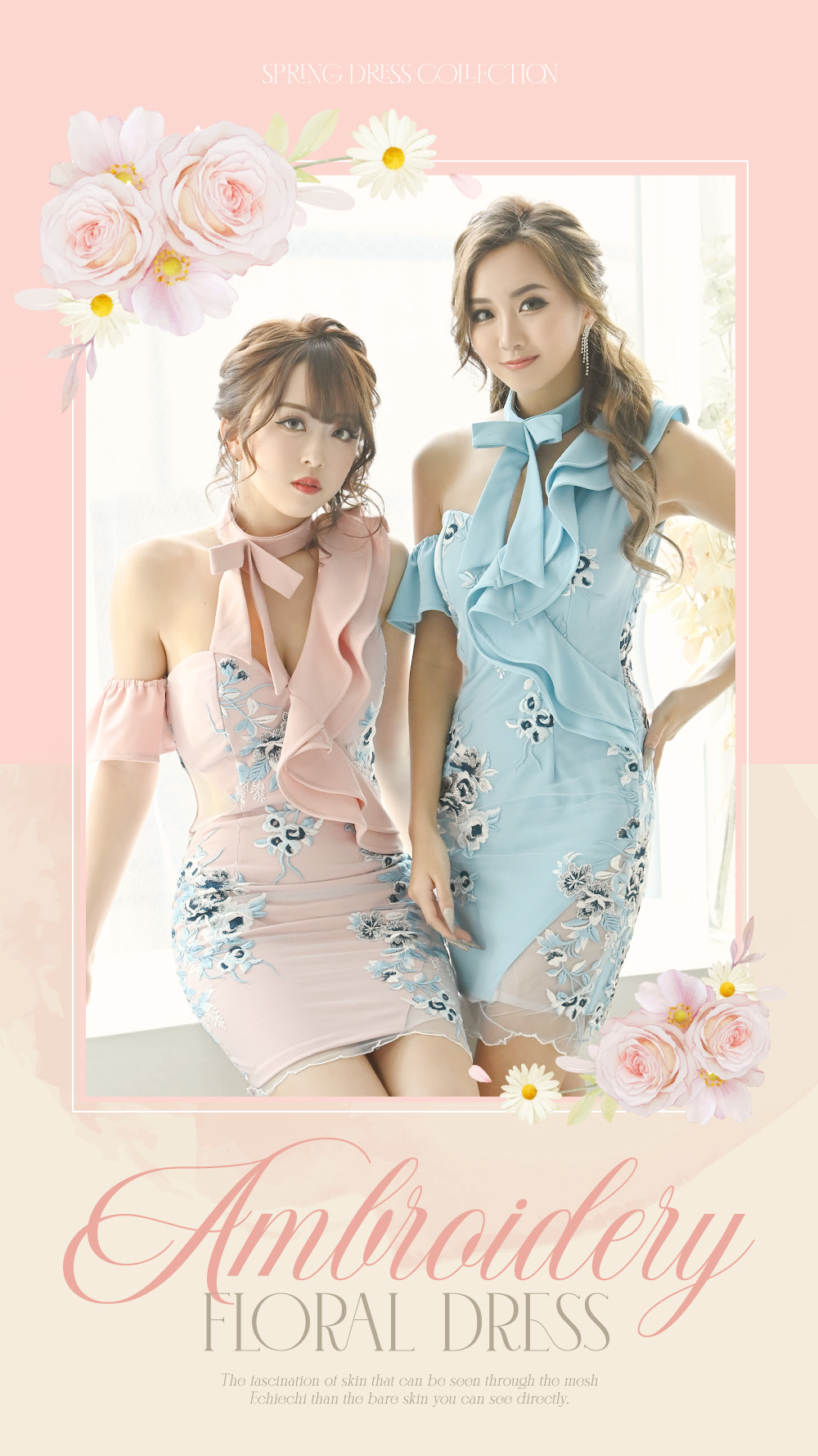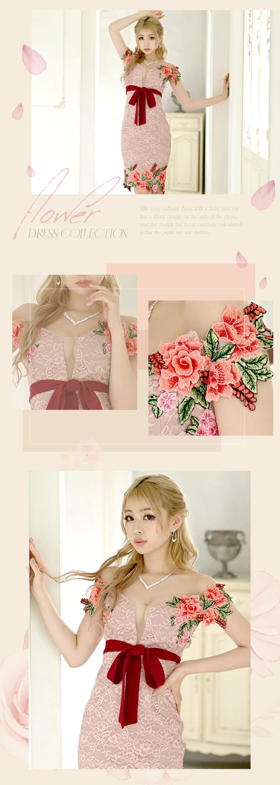 上品に、さらに色っぽさ溢れる花柄刺繍デザインで春をあなたから感じさせて🌸luxuaryなデザインがお客様が目で追うキャバ嬢に♥