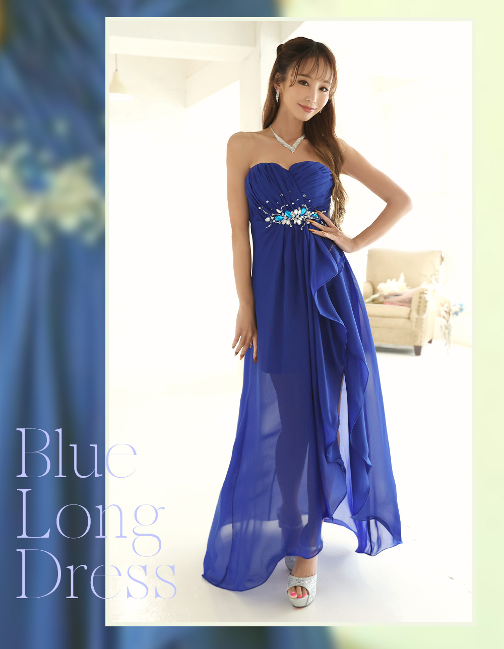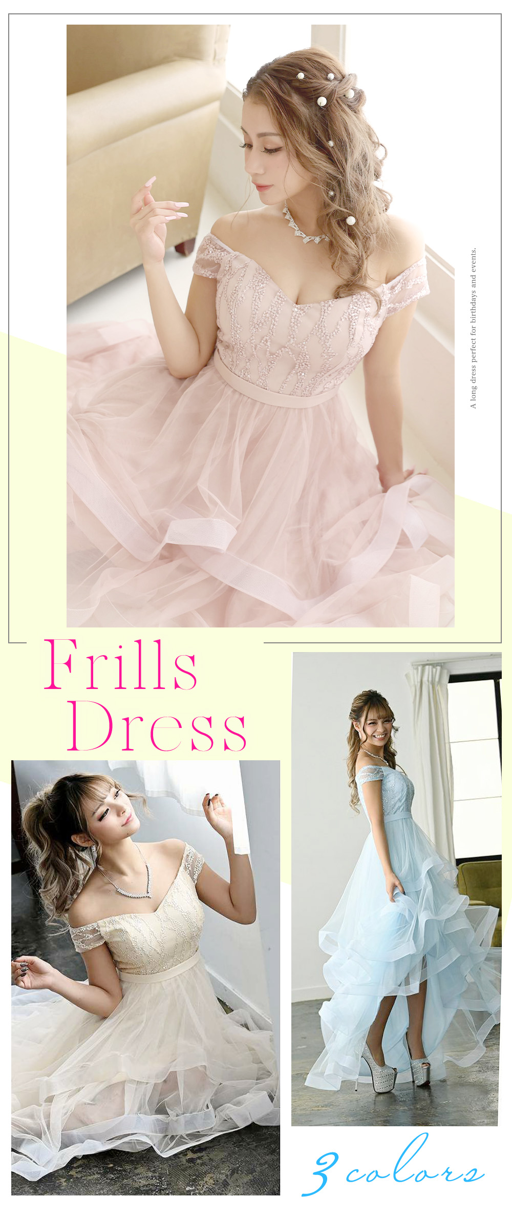 優雅なシフォンベースで歩く度にひらふわな余韻を残すlongDress夏でも重くならない圧倒的存在感を意識した柔らかい印象のドレス。
