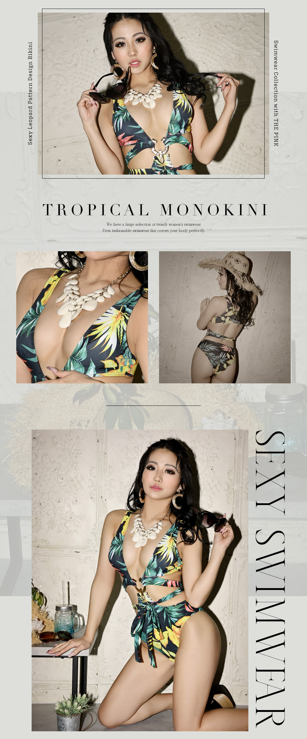 トロピカルな可愛さとエロさを落とし込んだモノキニにまわりはもう目が離せない♡さらに大胆なバスト魅せで男はイチコロに♡トロピカルな派手かわなデザインはギャル可愛い♡