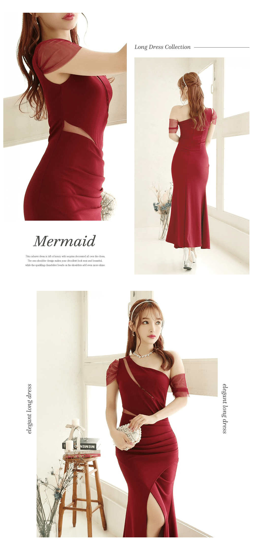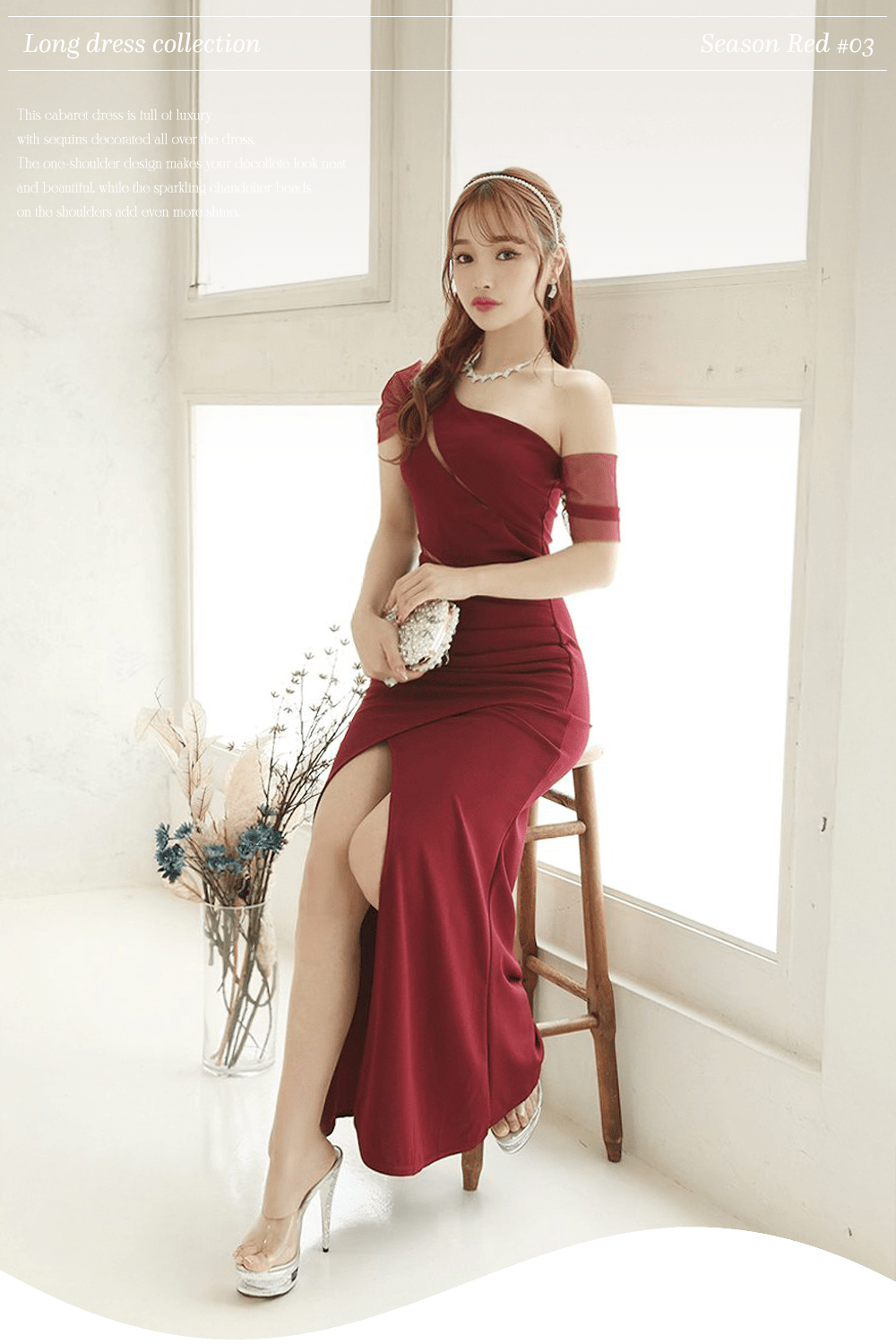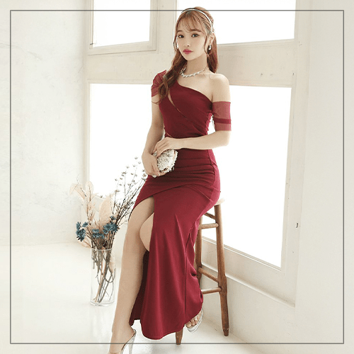 item no.510050大胆なワンショルダーとスリットが目を惹く♡冬の重くなりがちな装いに、大人の女性の魅力を引き出す鮮烈なレッドを♥
