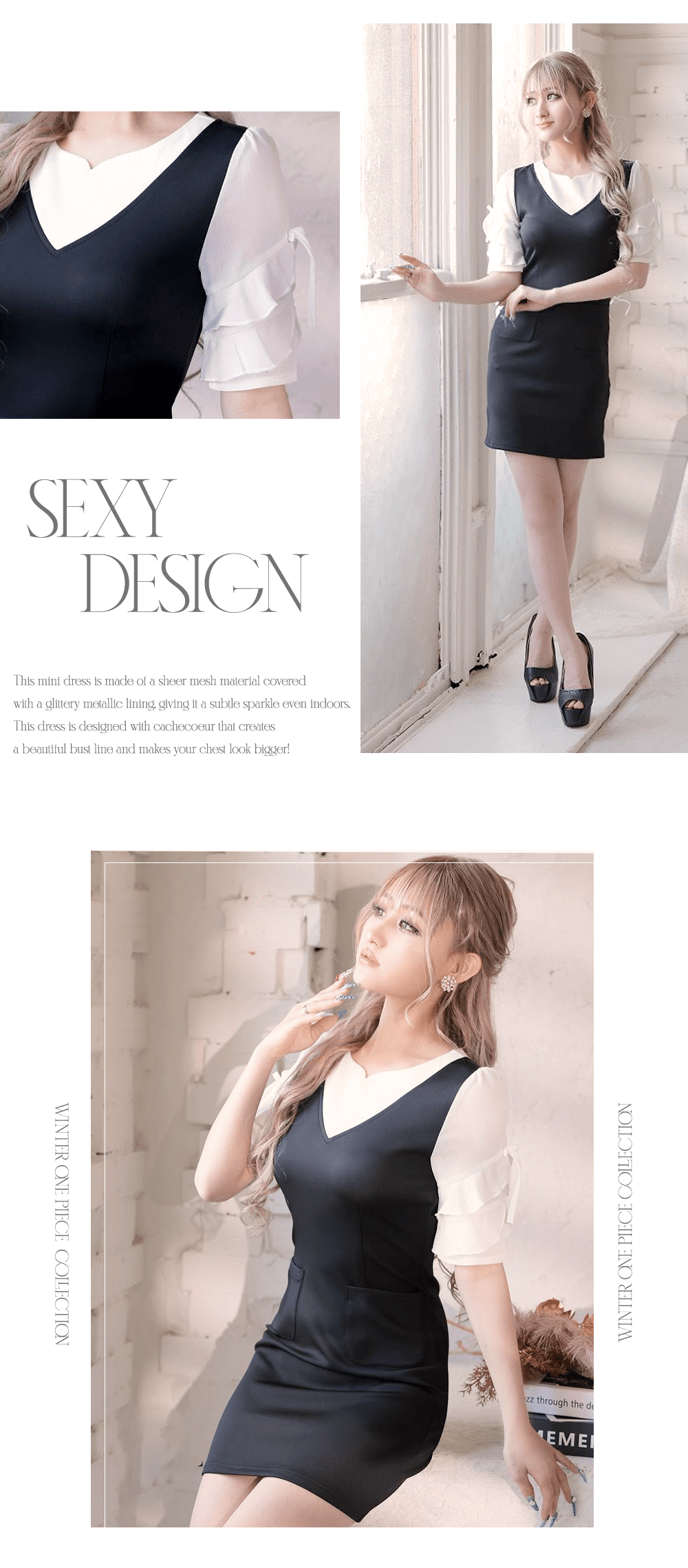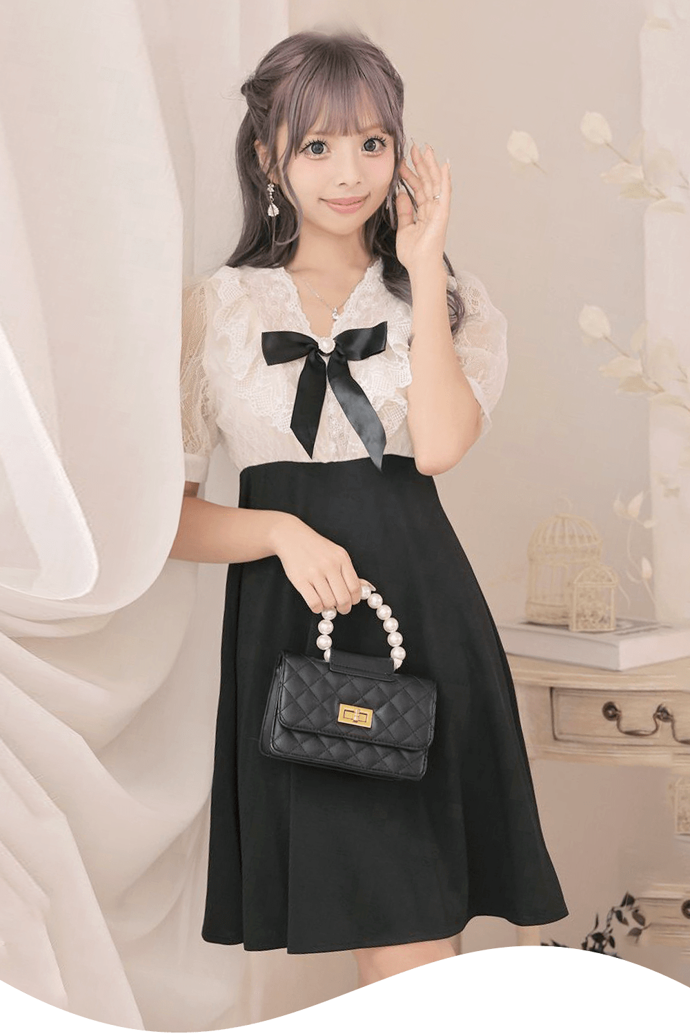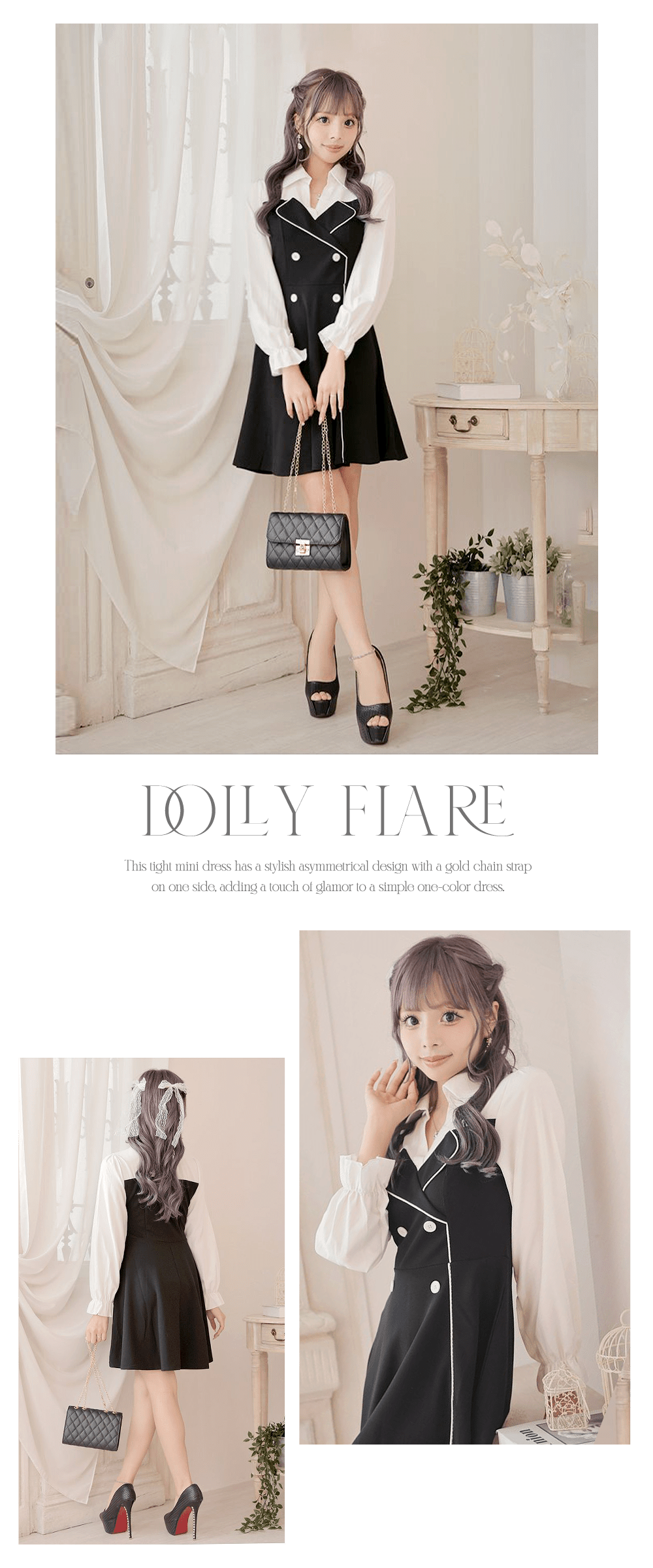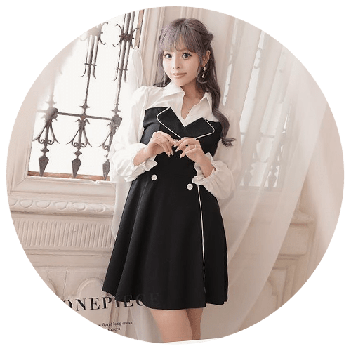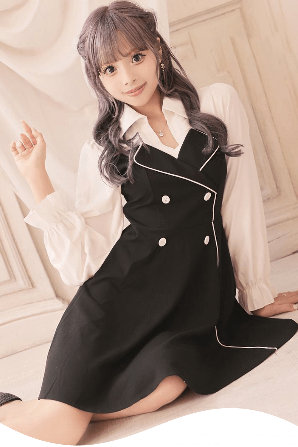 可愛さ溢れる地雷系なキャバワンピースドーリーなデザインが同伴やアフターはもちろん!デートコーデや推し活コーデとしても着れるブラウスワンピース