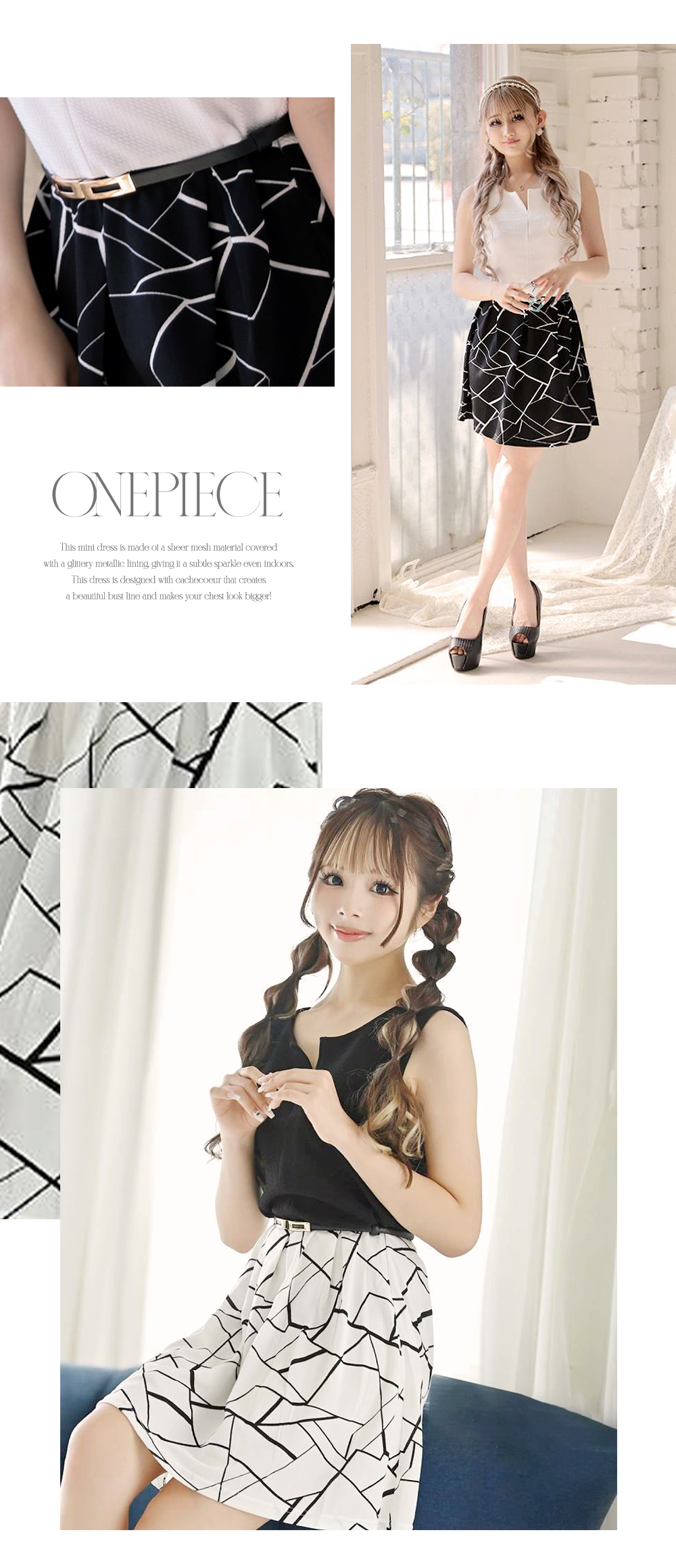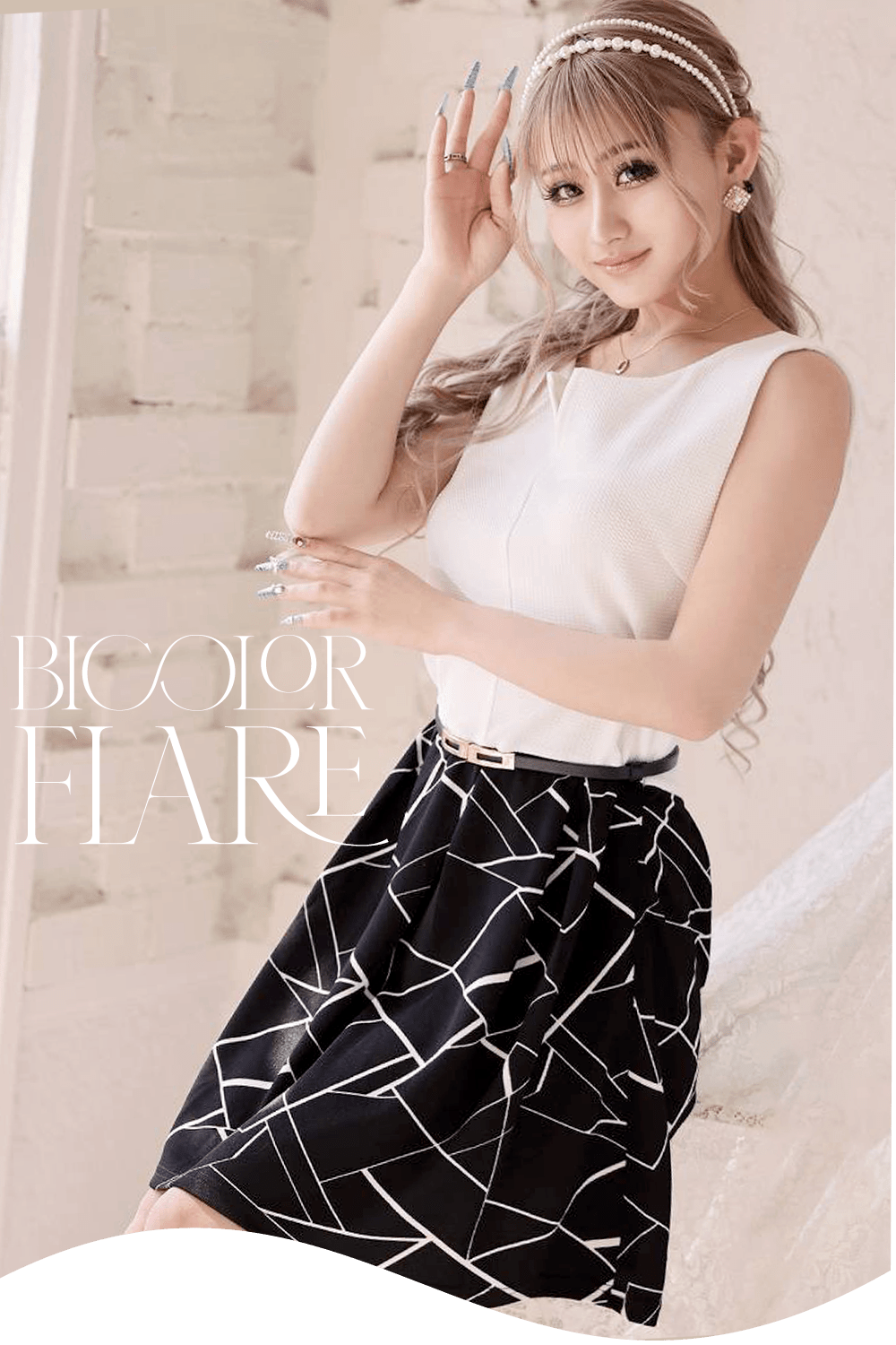 シンプルなのにオシャレな幾何学柄なので高見せできちゃうキャバワンピはオススメ!あいみんちゃん・あいさちゃん着用の周りと差をつけデザインワンピ。