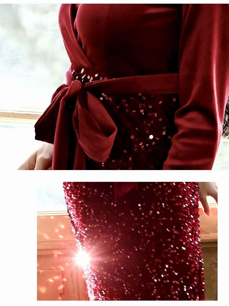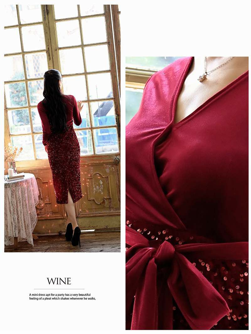 高級感溢れるベロア素材の韓国ドレスはスカート部分に贅沢にスパンコールをあしらいとても華やかに仕上げたキャバドレスです✨