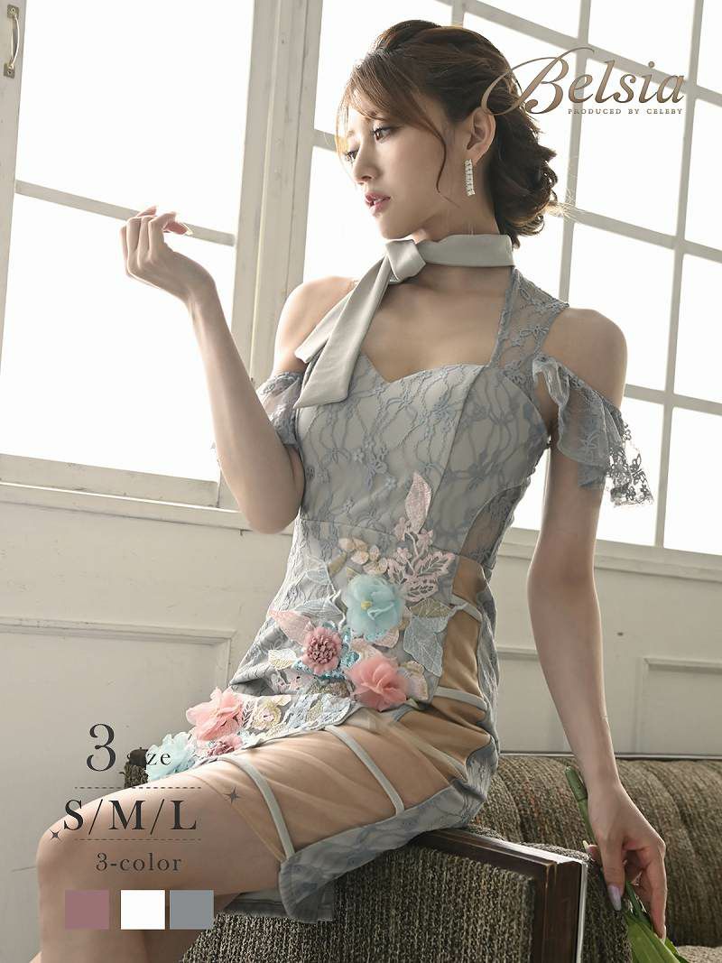 クロスネック花柄レース谷間魅せキャバドレス