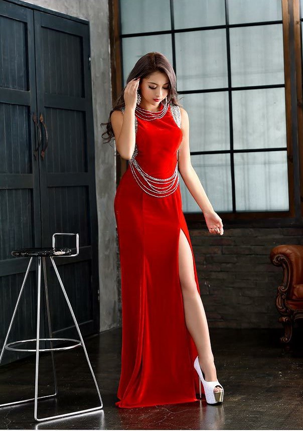 ウエストの細魅せと深めに入ったスリットがセクシーで脚長効果と美脚効果を叶えるロングドレス❣❣