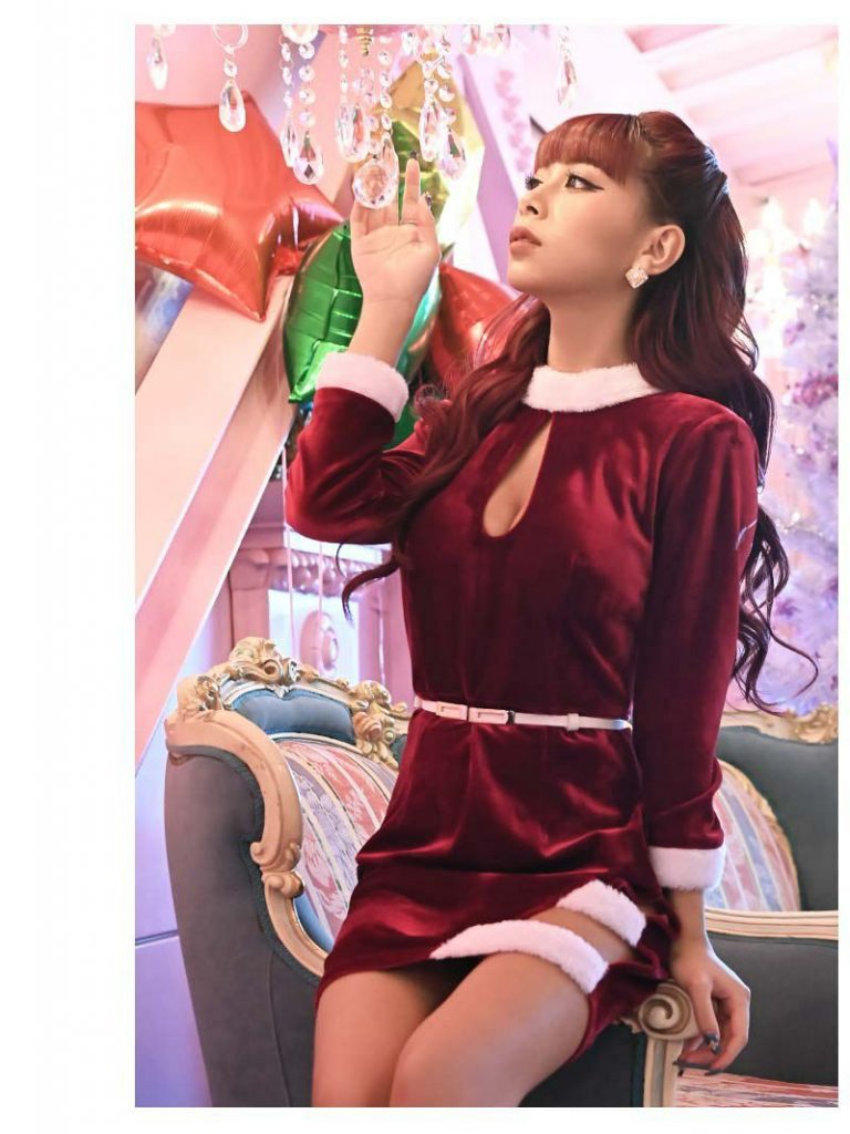 あいみちゃん着用♥ワインレッドベロア調サイドスリットサンタコスプレ