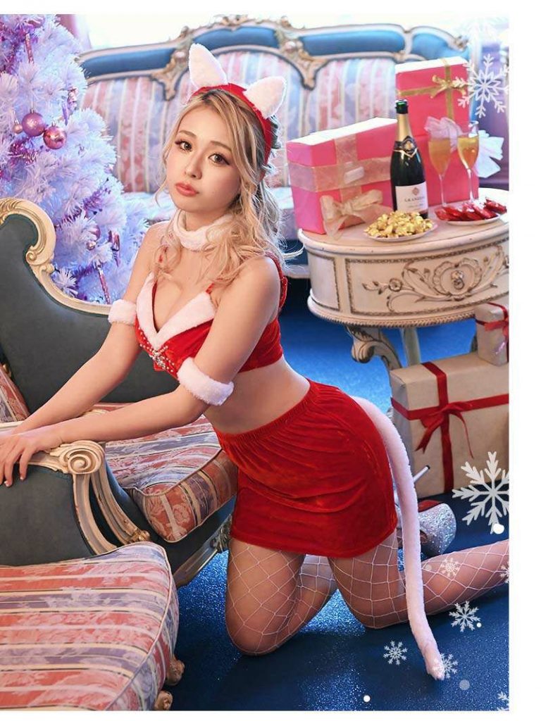 ゆずはちゃん着用♥猫耳付きへそ出しビジューセパレートサンタコスプレ5点セット