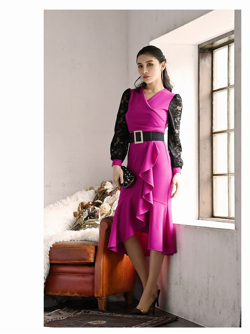 五分袖ベルト風デザイン膝丈キャバワンピース