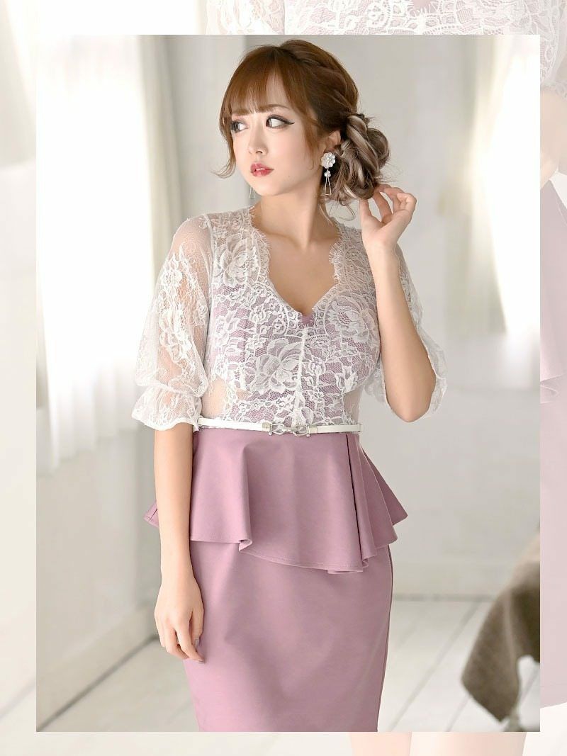 ホワイトレース袖付きペプラムラインキャバドレス / ¥6280+tax