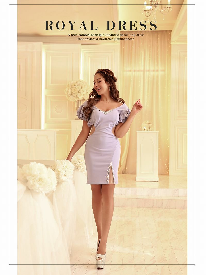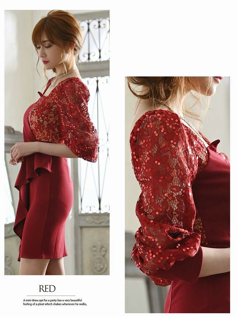 輝くビジューが施されたミニドレスはフリル袖でキャバ嬢さんが気になる二の腕を可愛くカバーできる袖付きドレスです😘
