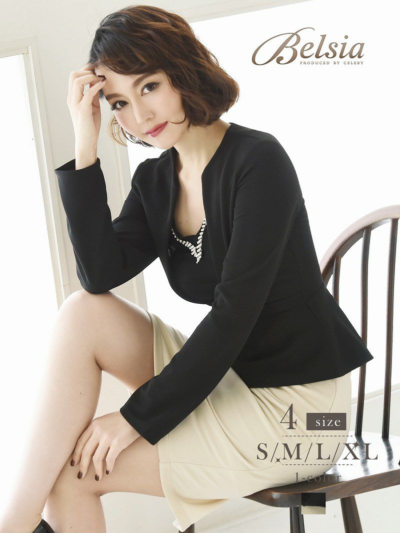 ペプラムデザインなのでくびれをキュッと引き締めた印象に見せてくれる😊お酒をたくさん飲むキャバ嬢さんやホステスさんにとってお腹カバーが出来るペプラムジャケットは嬉しいですよね💞