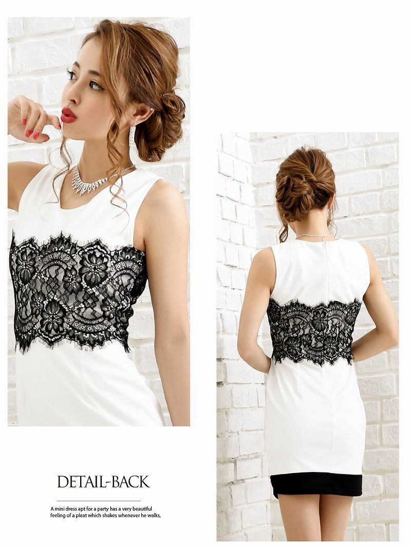 モノトーンにレースが付いたドレッシーな雰囲気のワンピースは