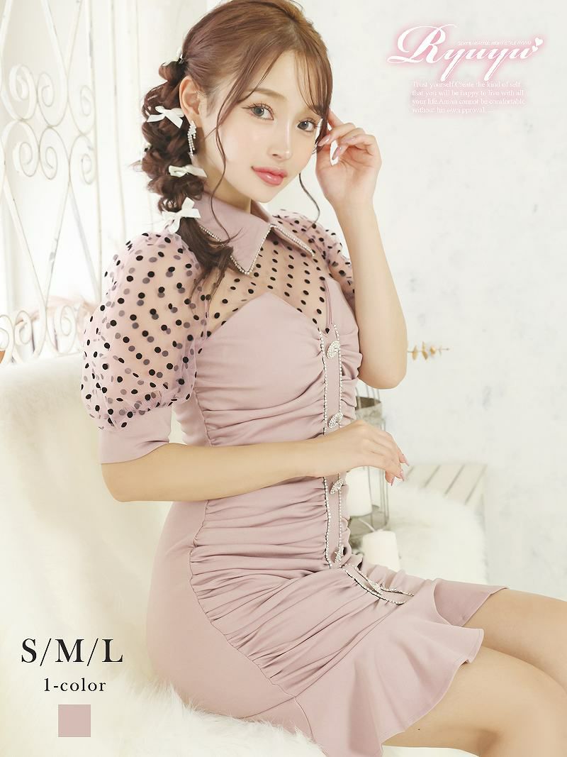 フロントリボンツイード袖付きタイトキャバドレス \7,350