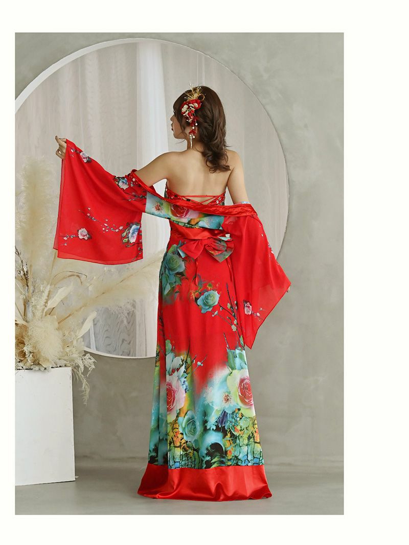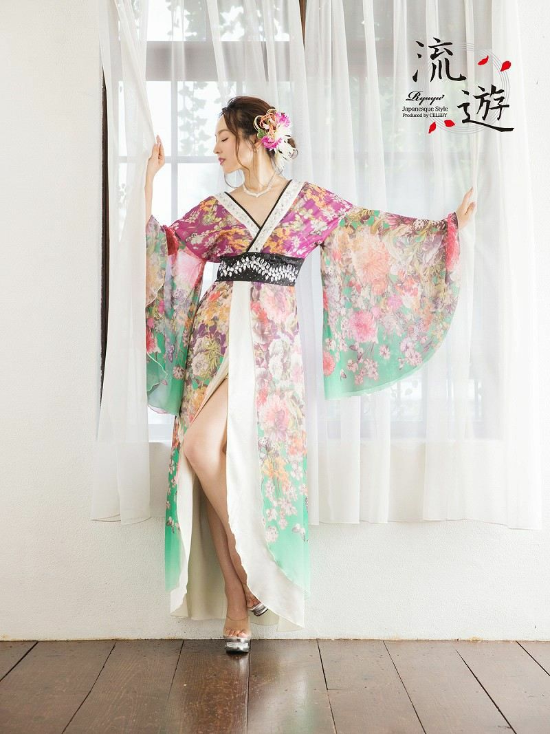 グラデーション和華柄シフォン和柄ドレス