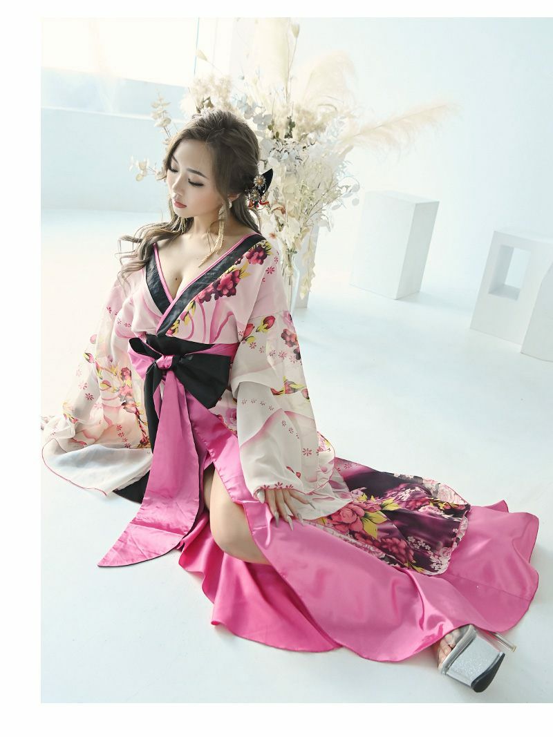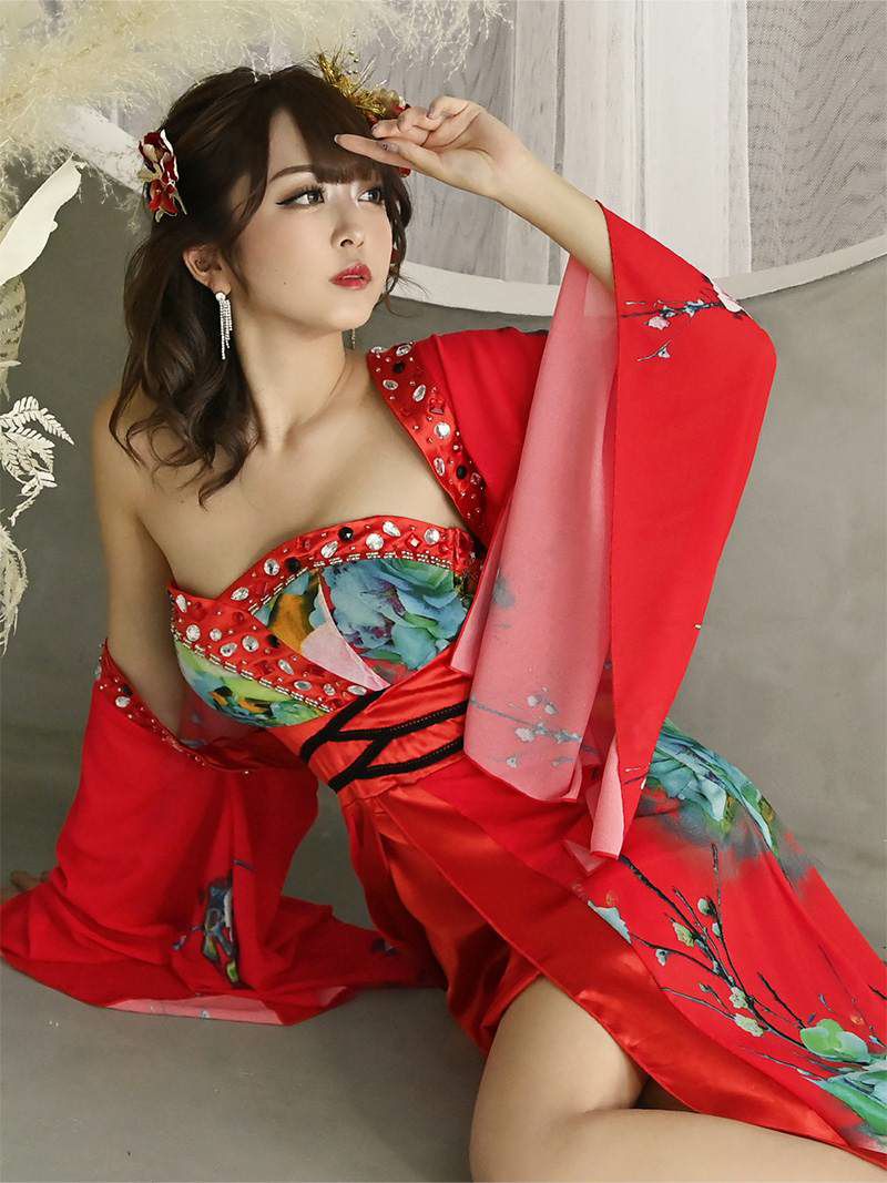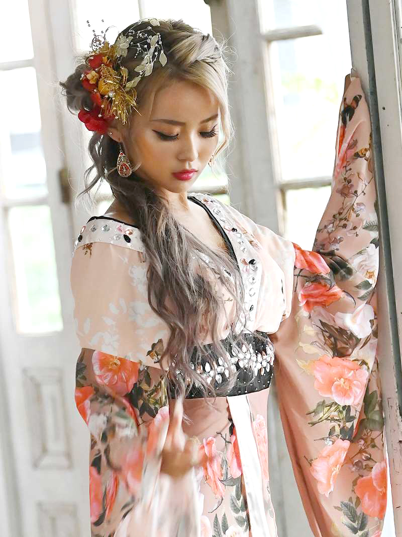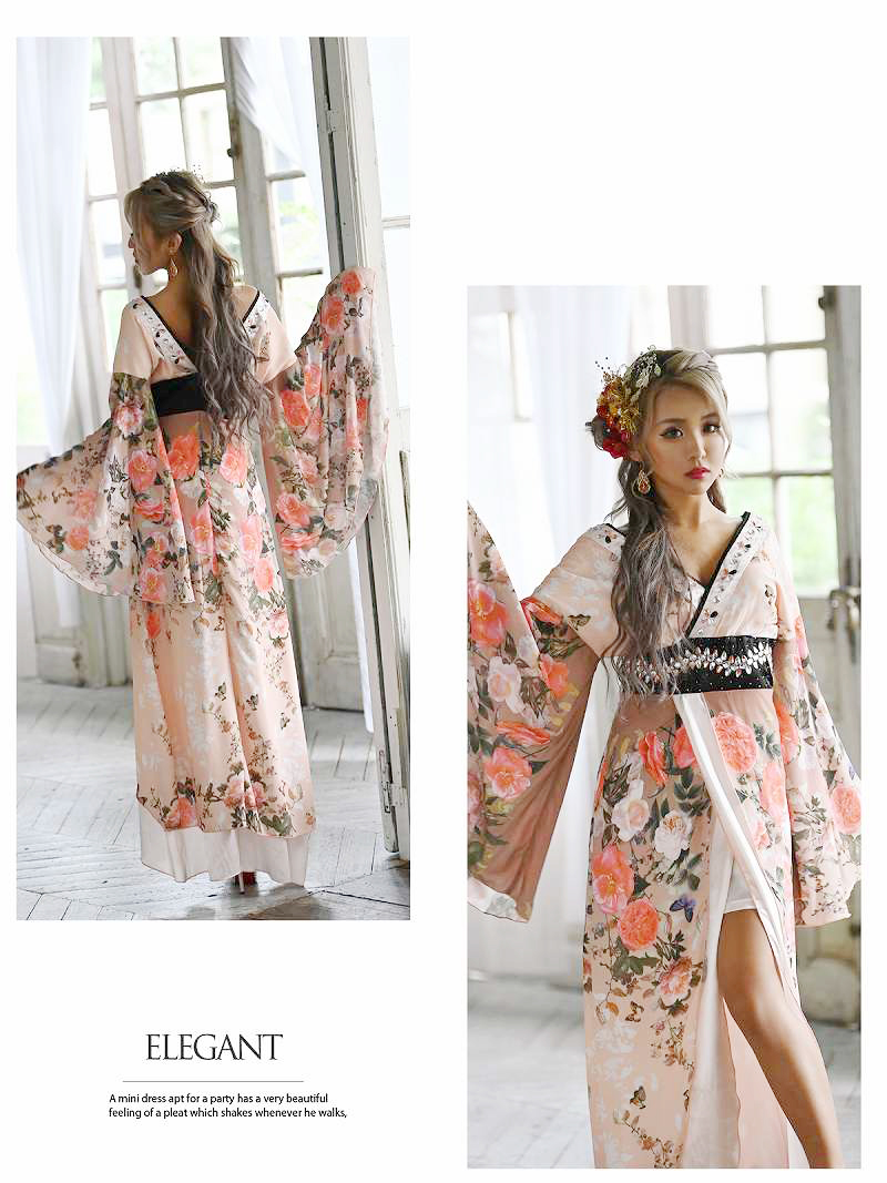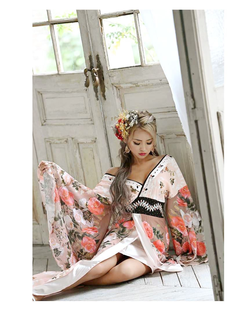豪華ビジューシェルピンク花魁和柄ドレス