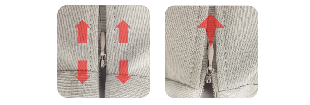 ファスナーの取っ手を垂直に