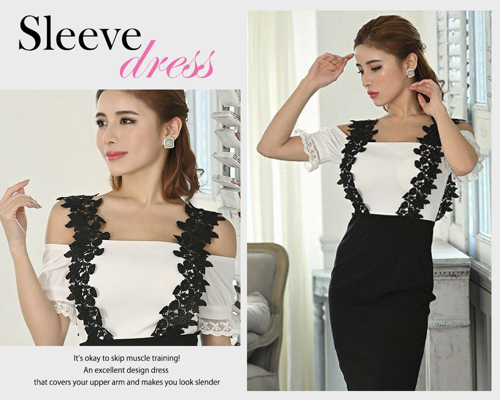 • 二の腕カバーも叶う!レース袖×立体刺繍のSexyミニドレス