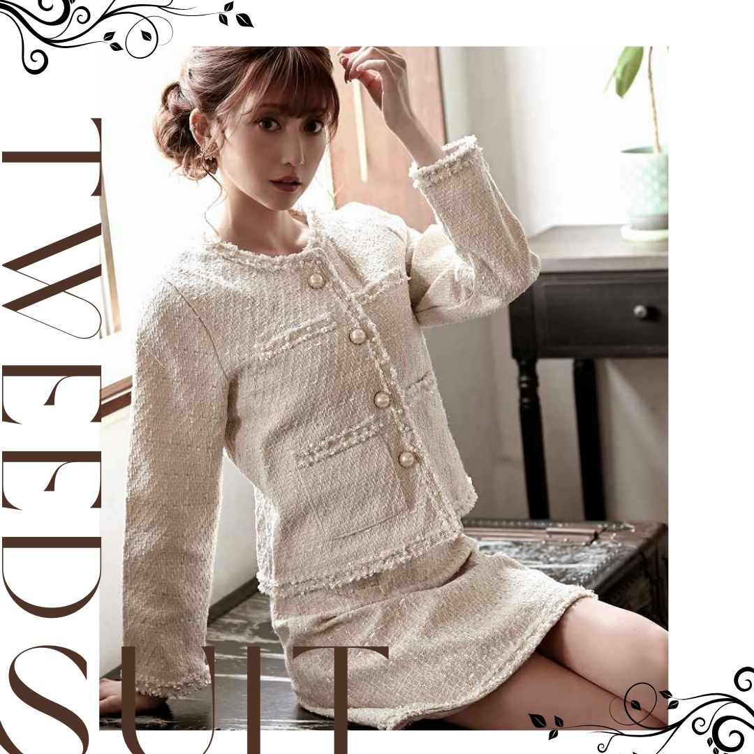 女性らしいデザインと見た目も可愛くておしゃれなツイードスーツは毎年大人気です💖