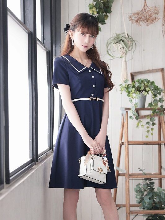 ネイビーの落ち着きとフレアシルエットの可愛さが好バランス💘