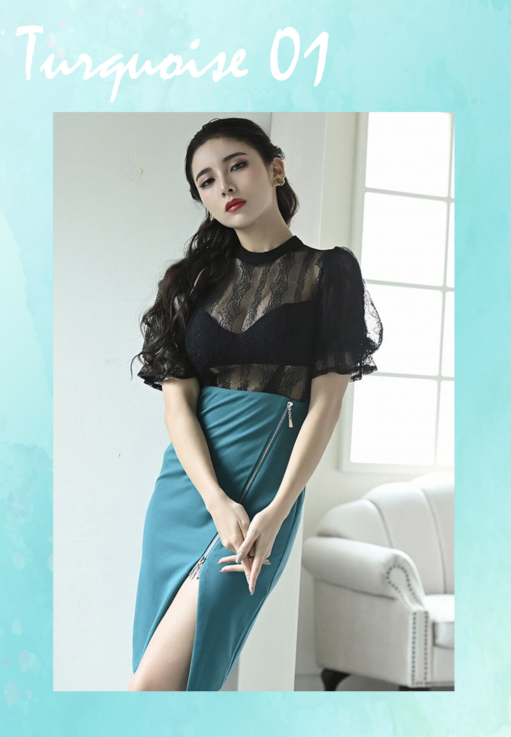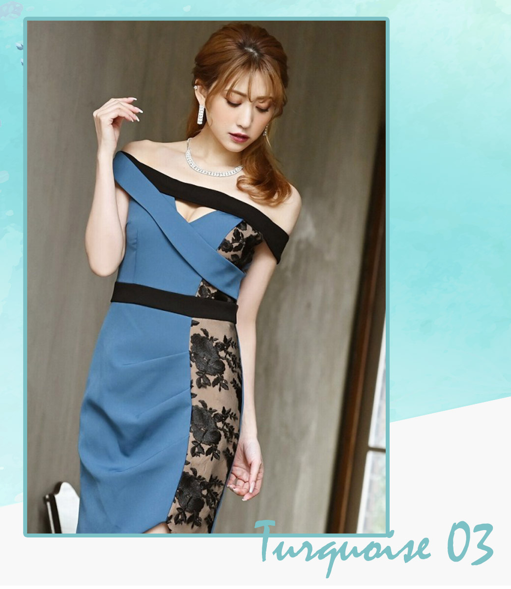 暗い店内でも映える 印象美人に! ターコイズ&バーガンディドレス